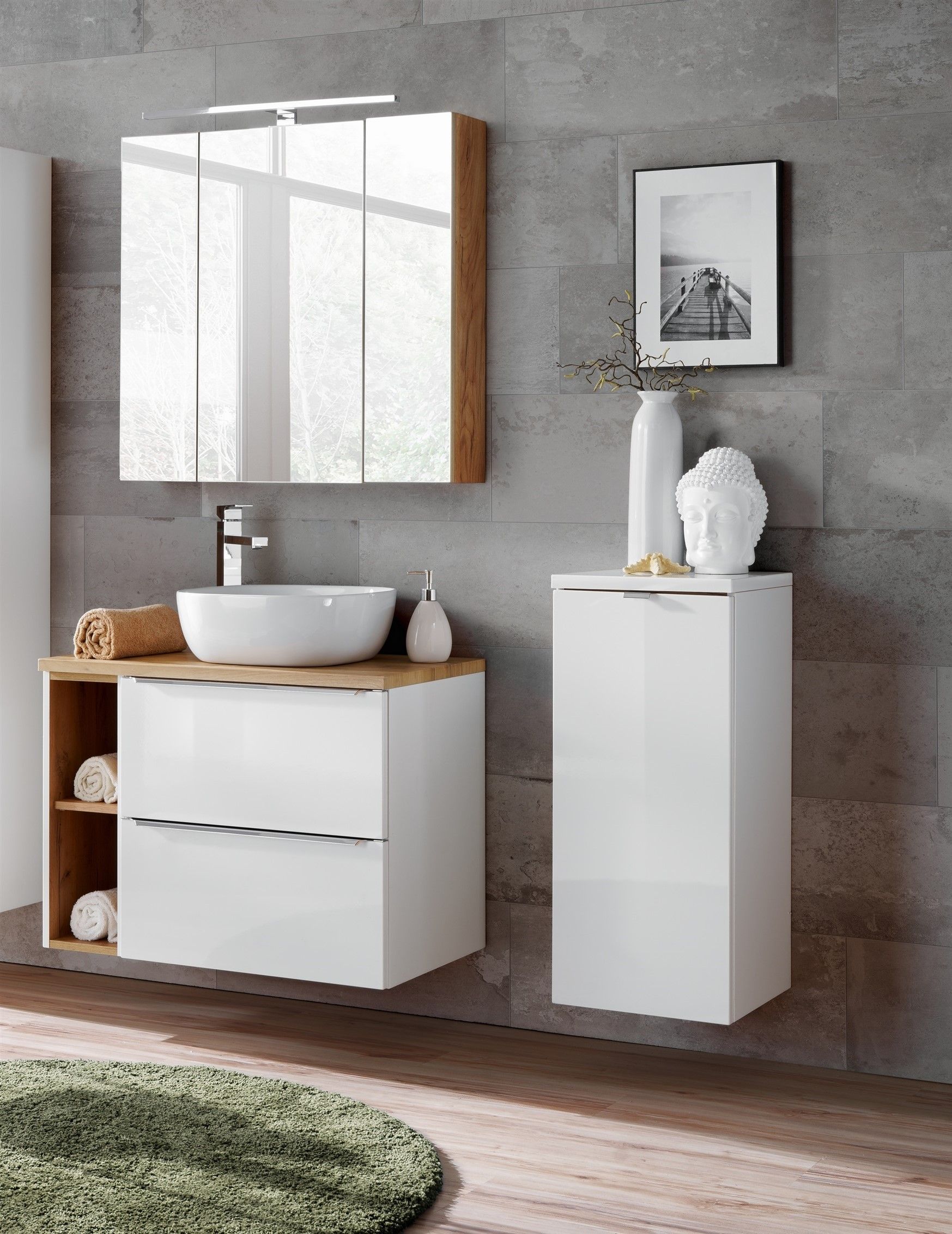 Badmöbel Set 6-tlg Badezimmerset Perugia Weiss HGL inkl. Waschbecken