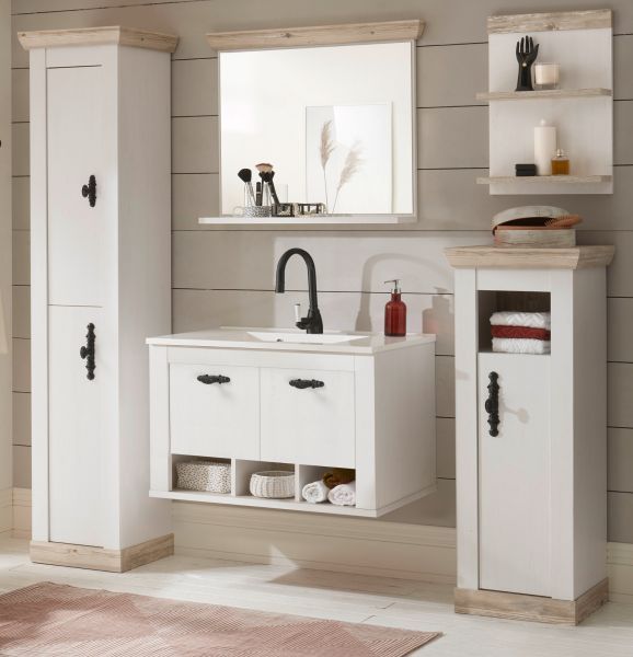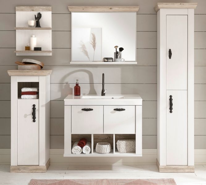 Badmöbel Set 6-tlg. Waschtisch MIT Waschbecken Badkombination Rovola in Pinie weiß