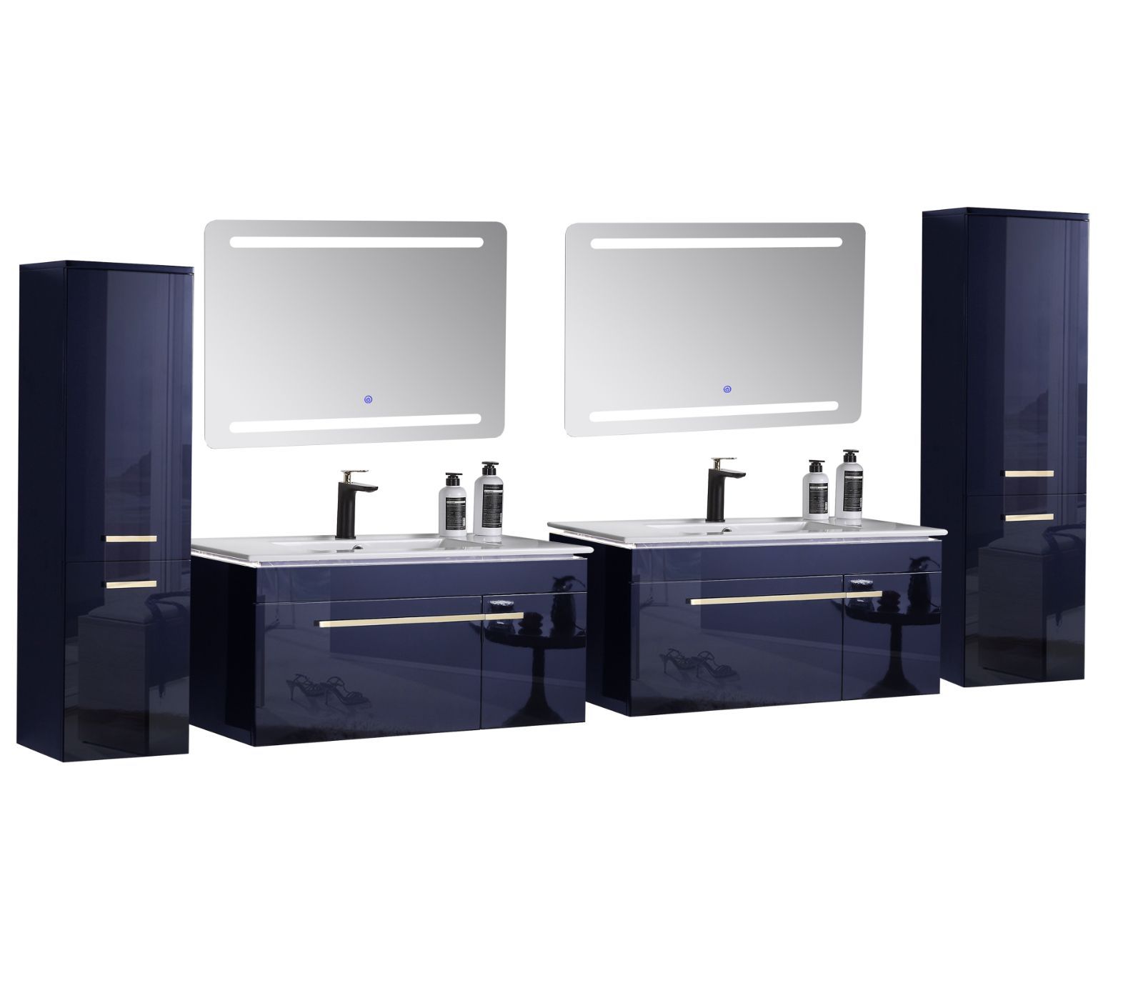 Badmöbel Set 8 Teilig 240 cm Hochglanz Blau LED Spiegel Badezimmer Hochglanz