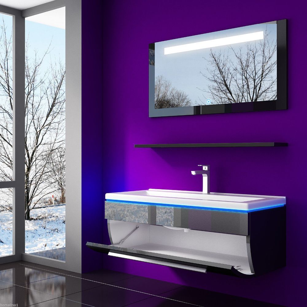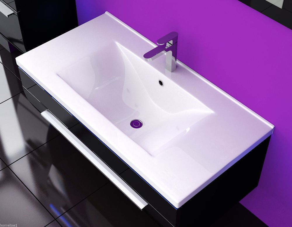 Badmöbel Set 90 cm Schwarz Lackiert Komplett Hochglanz Badezimmermöbel 4Teilig Bad
