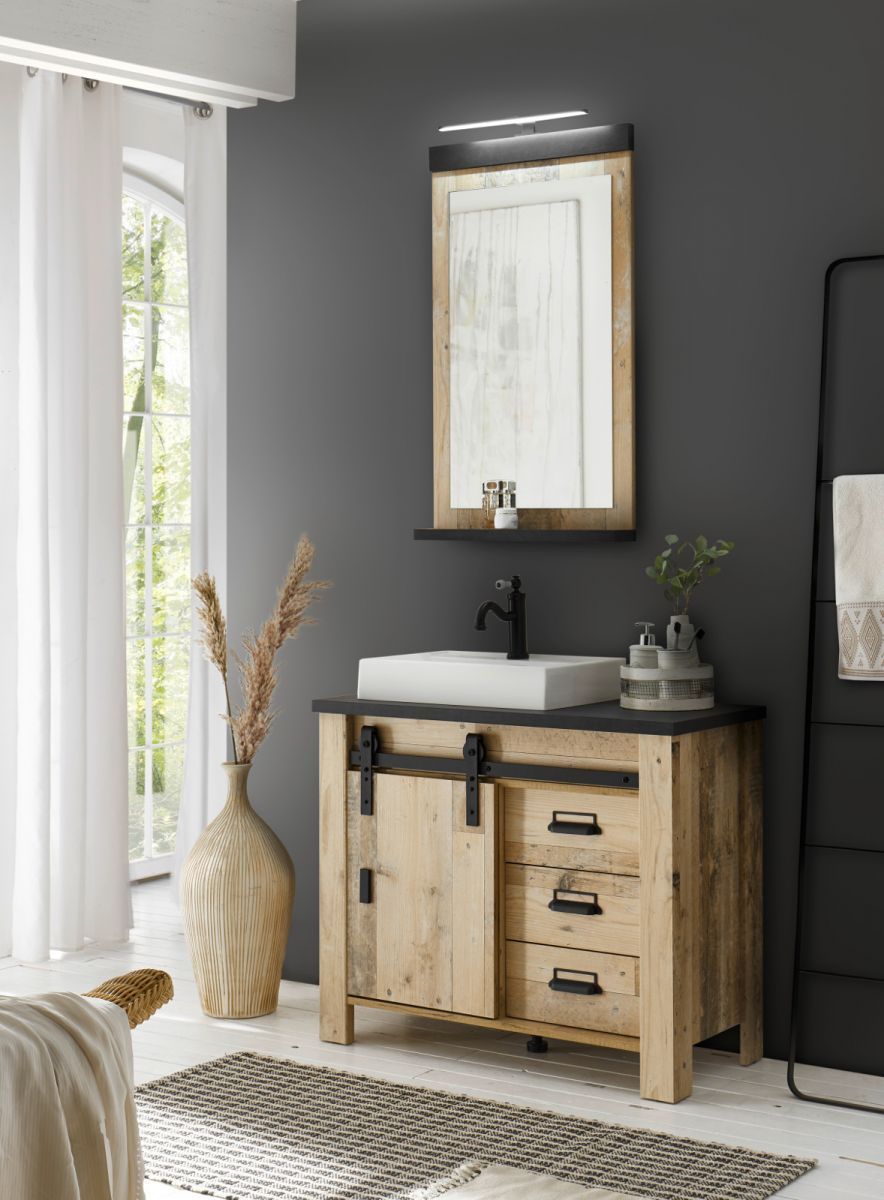 Badmöbel Set Badezimmer 4-tlg. Waschtisch Waschbecken Spiegel Beleuchtung Stove