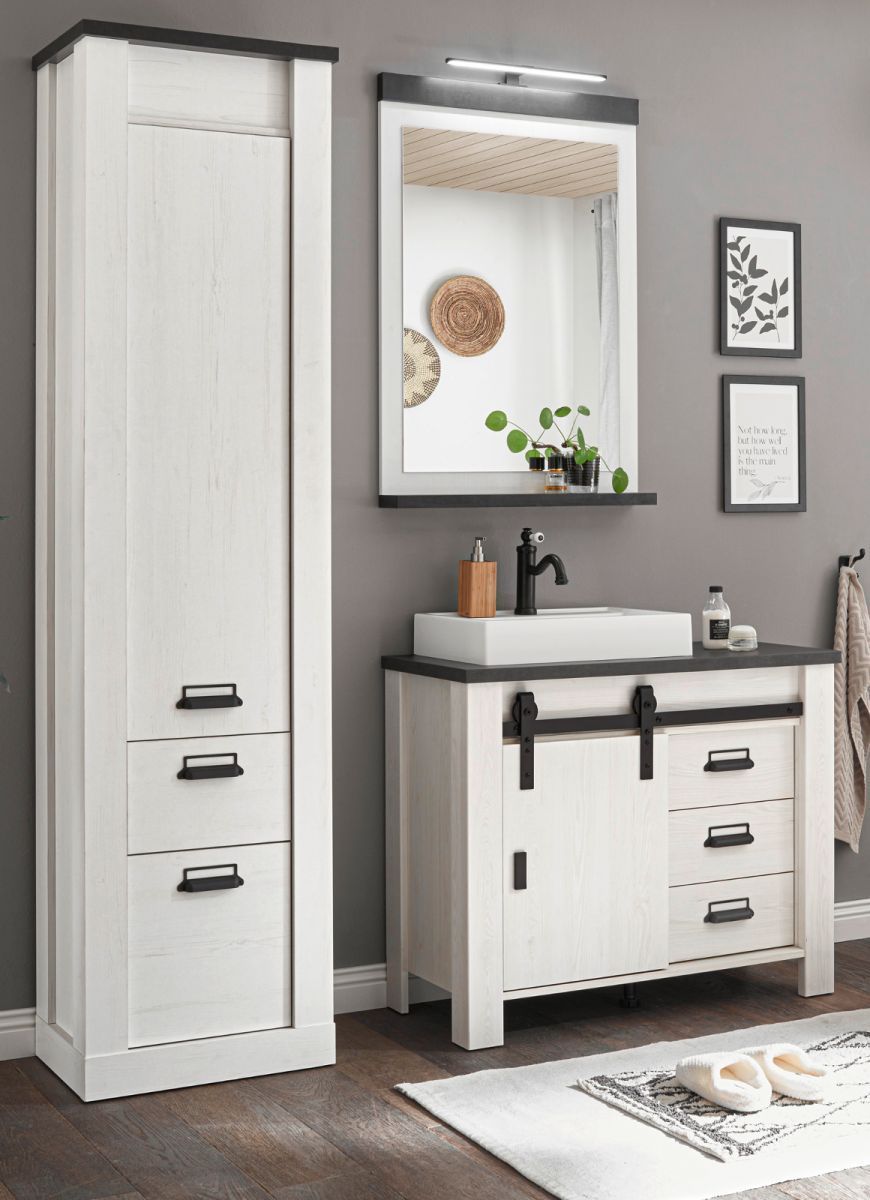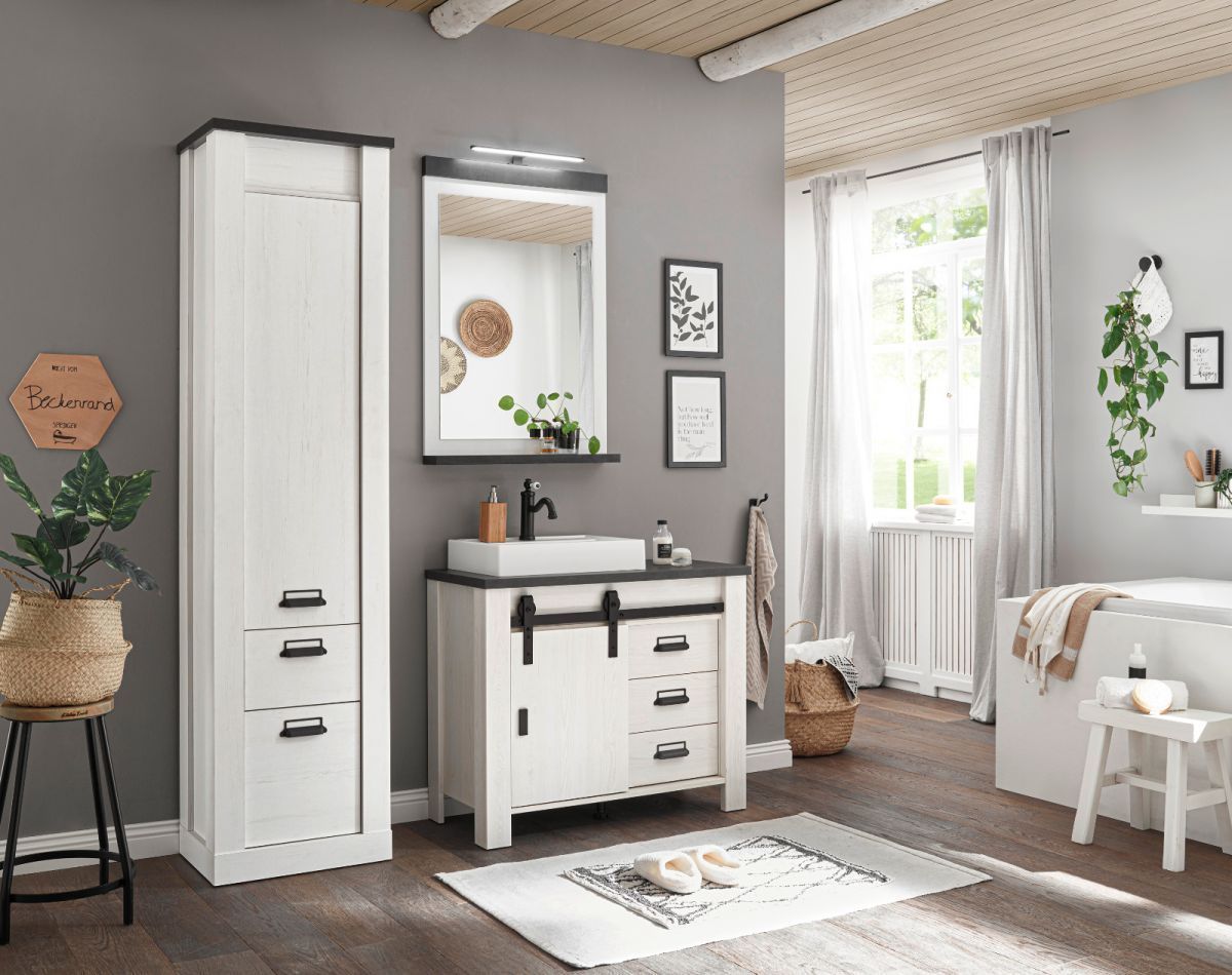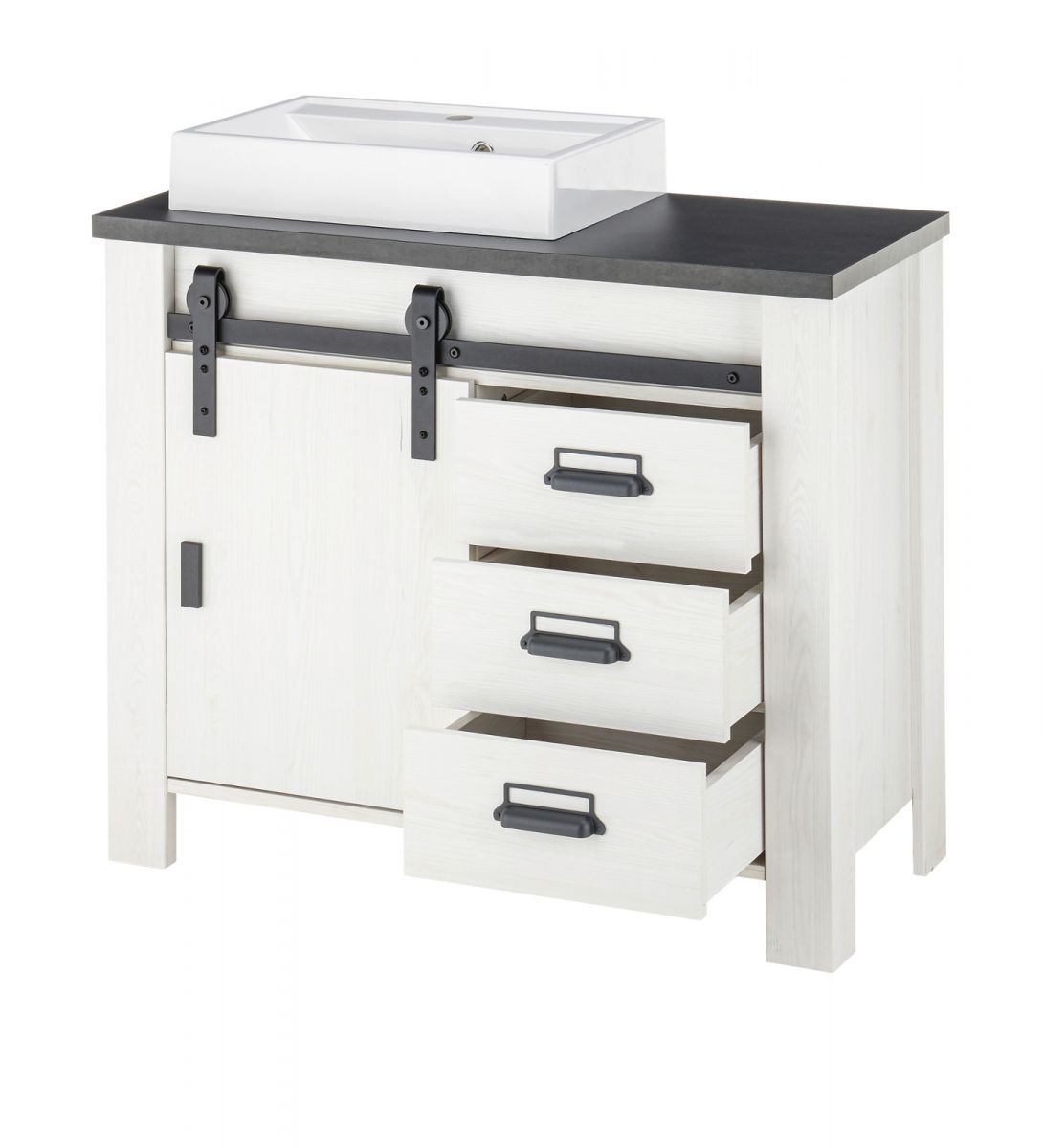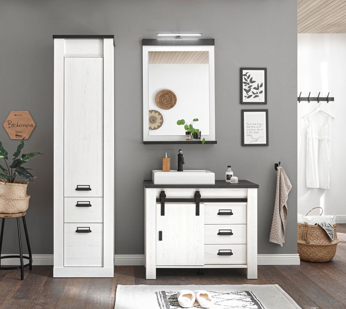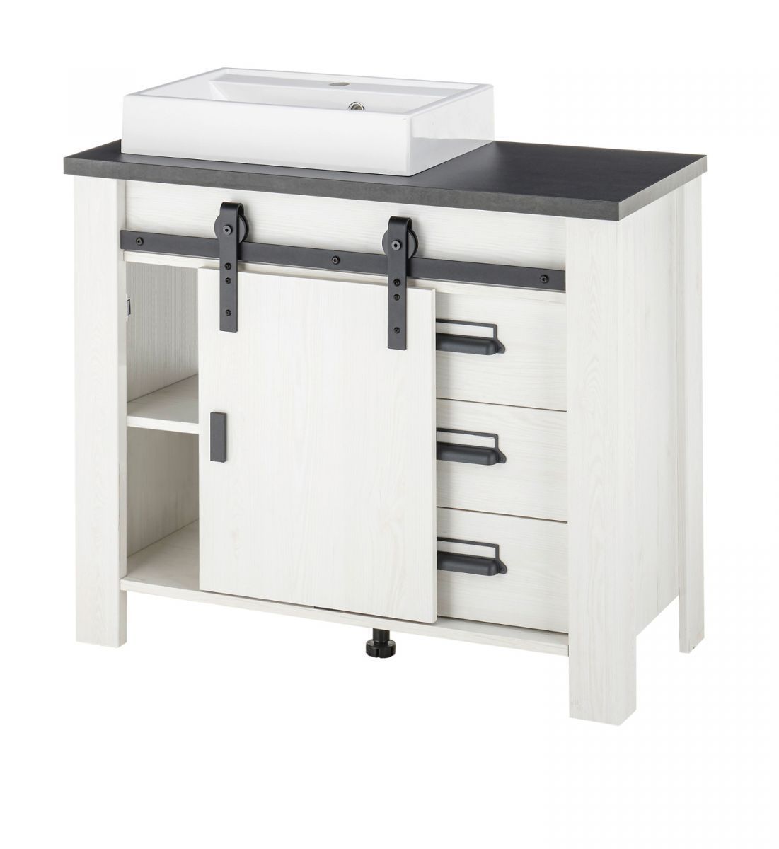 Badmöbel Set Badezimmer 5-tlg Waschtisch mit Waschbecken inkl. Beleuchtung Stove