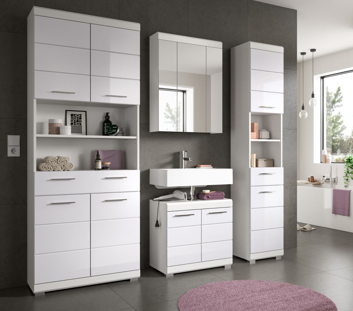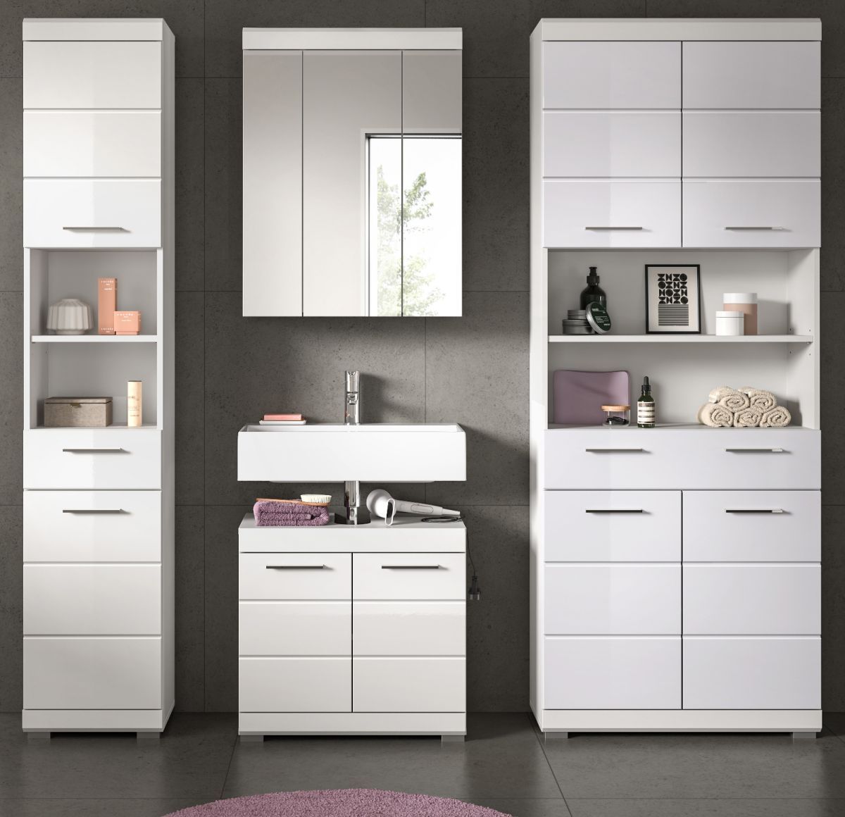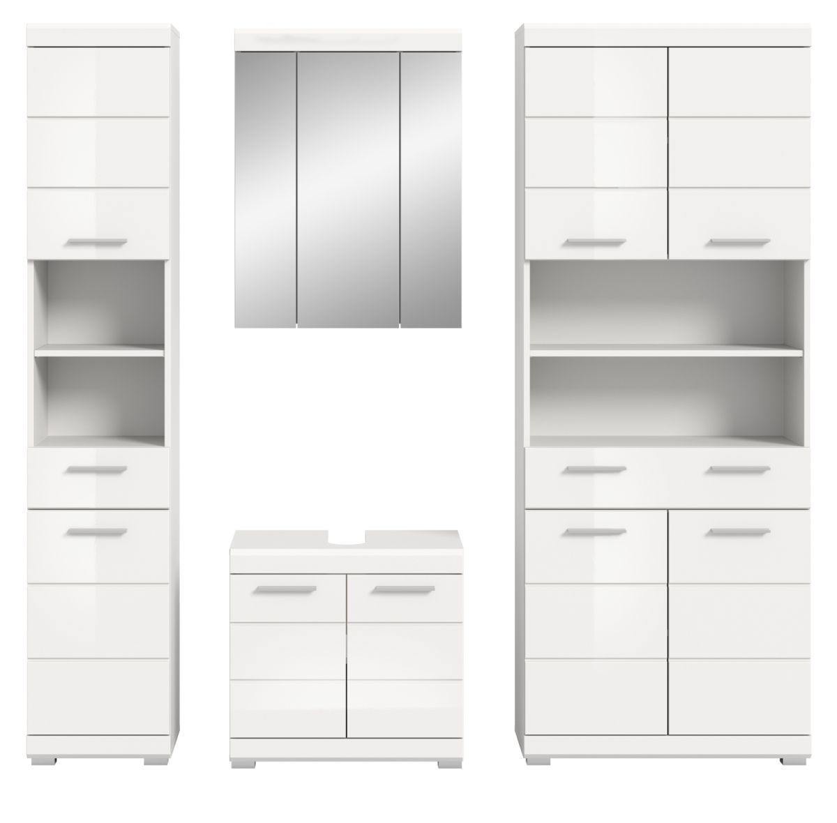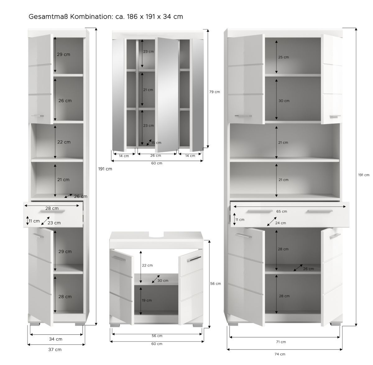 Badmöbel Set Badezimmer Bad Möbelset 4-tlg 2x Hochschrank weiß Hochglanz Shawn 200 cm