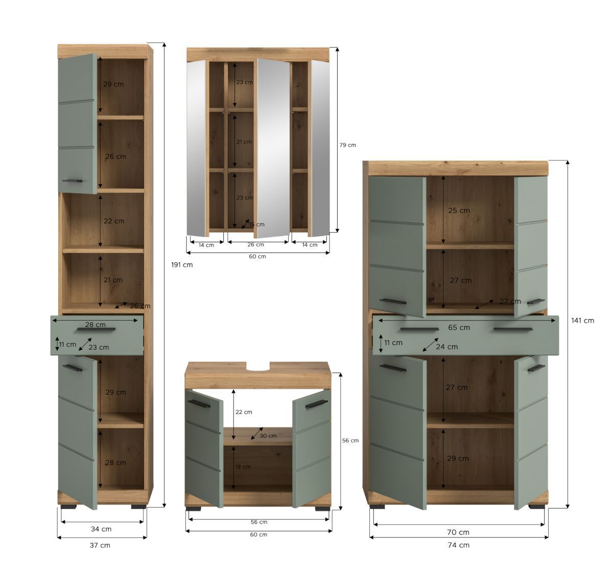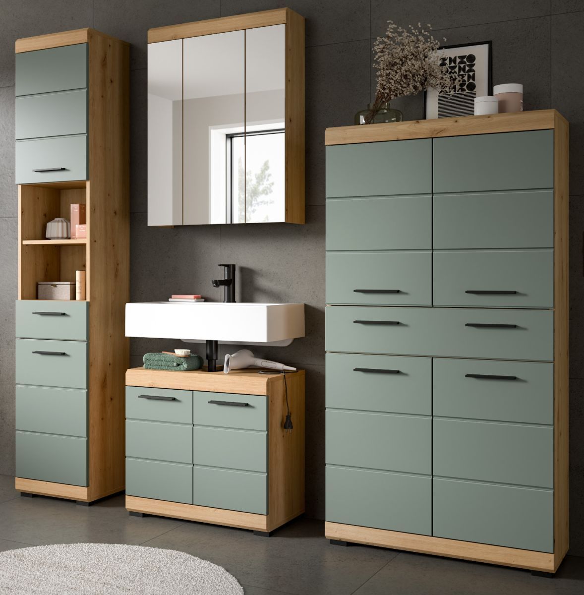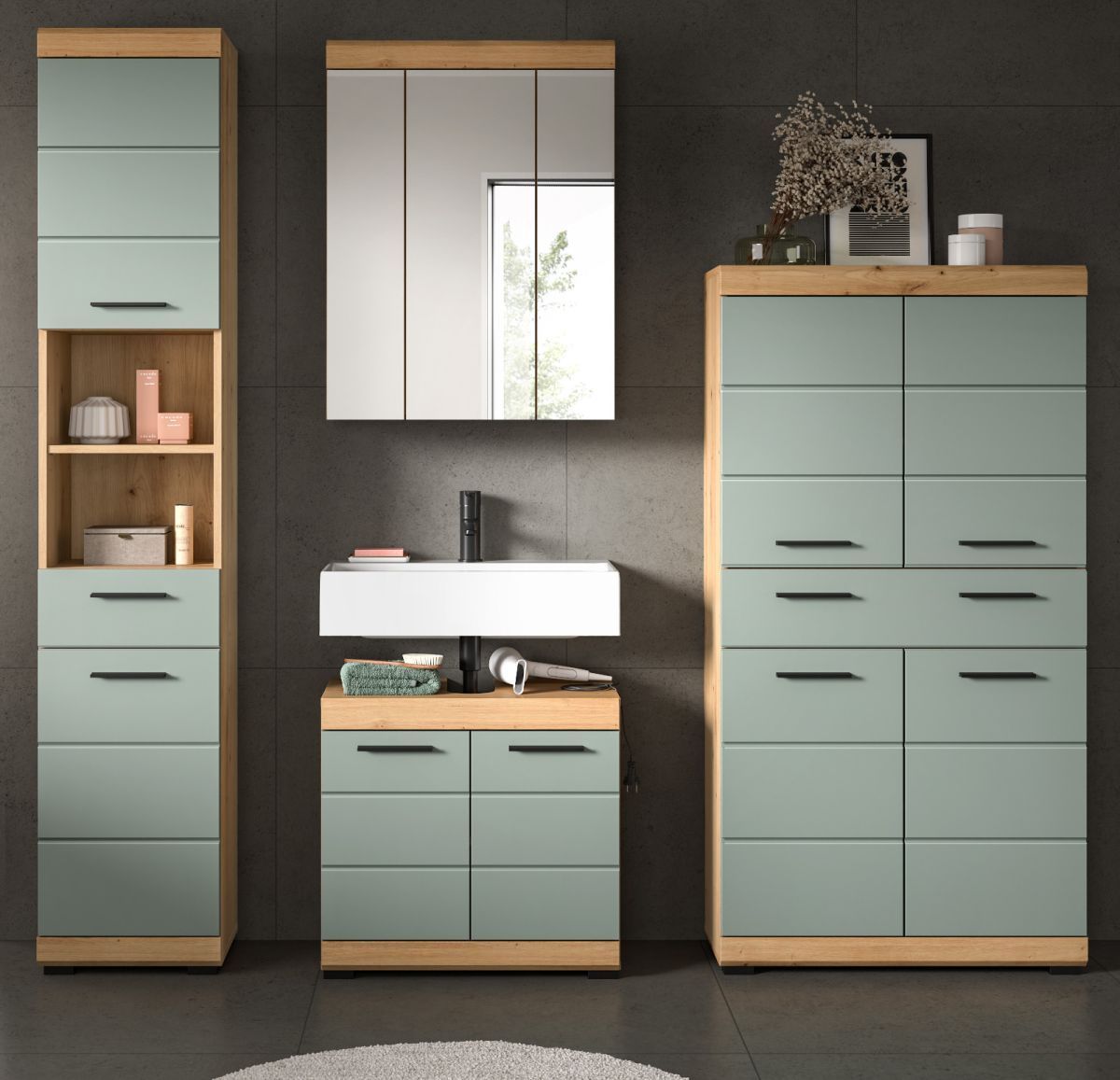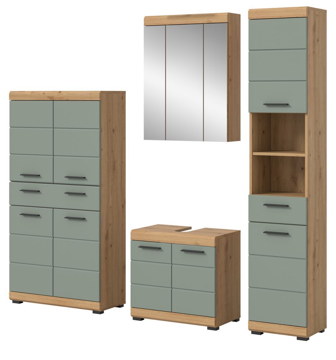 Badmöbel Set Badezimmer Einrichtung Salbei grün Eiche Bad Möbelset 4-tlg Shawn 200 cm