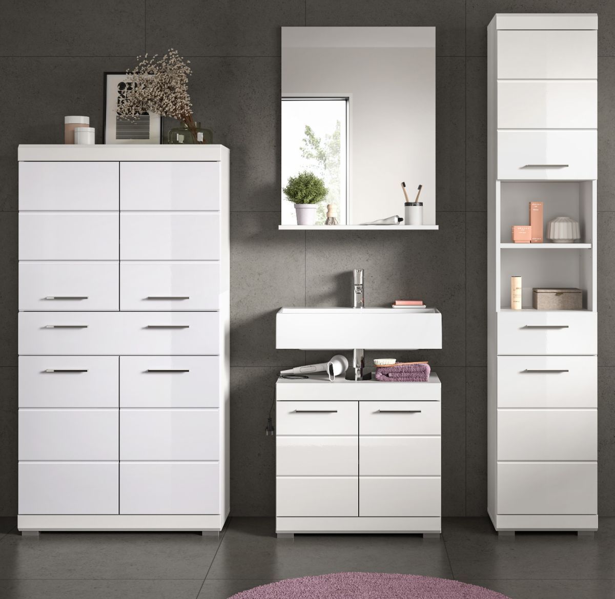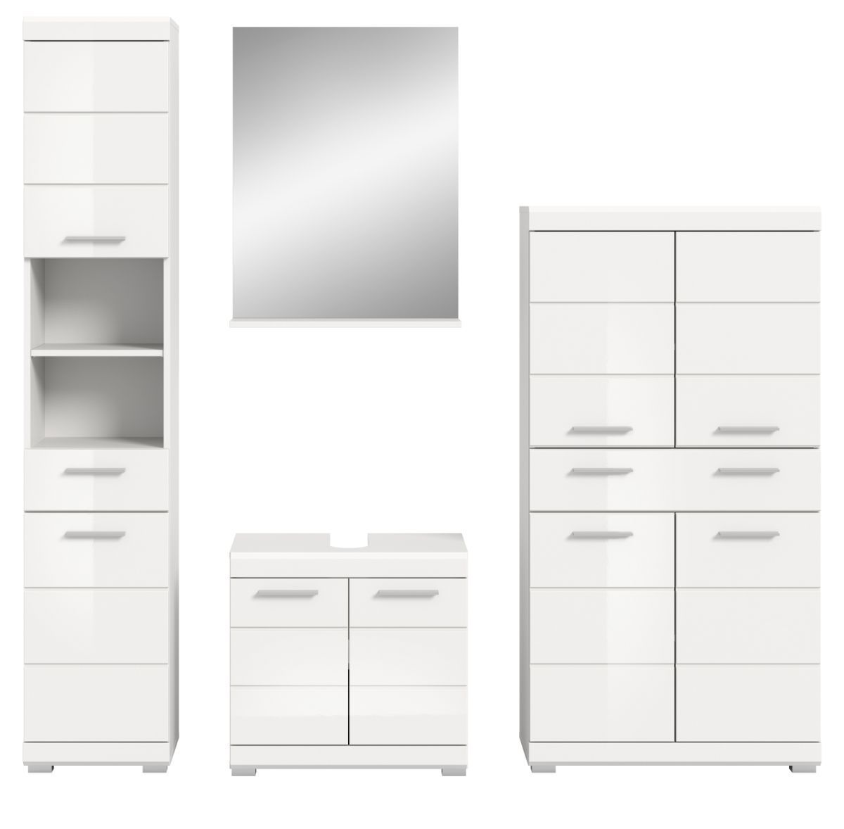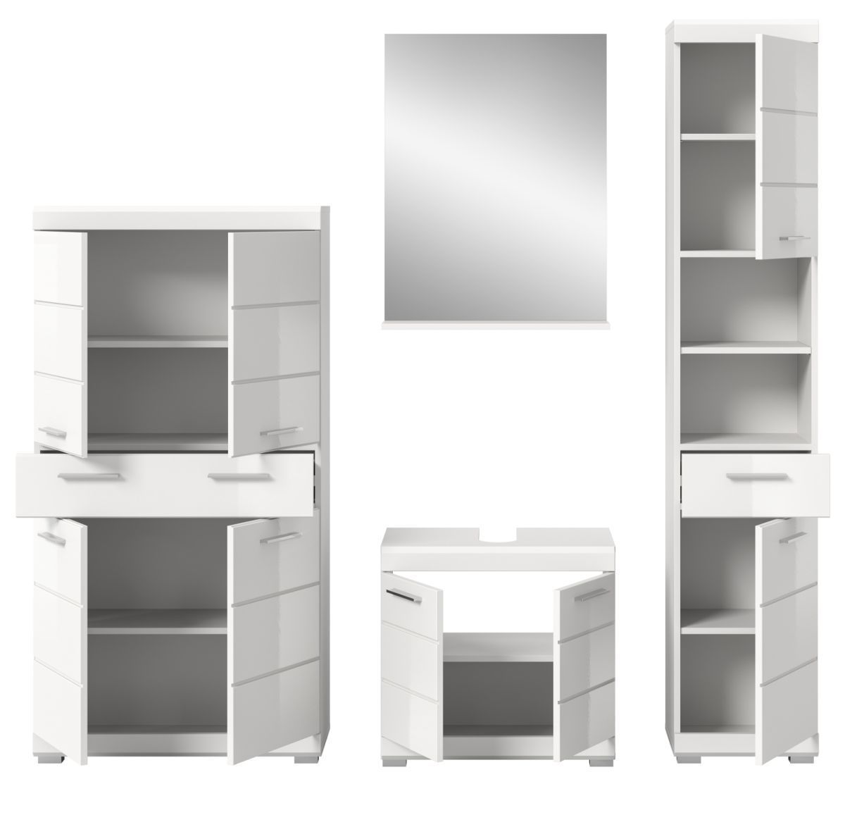 Badmöbel Set Badezimmer in weiß Hochglanz Möbelset 4-tlg mit Midischrank Shawn 200 cm