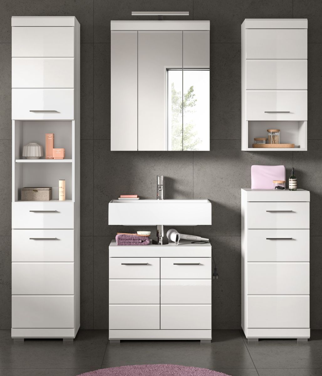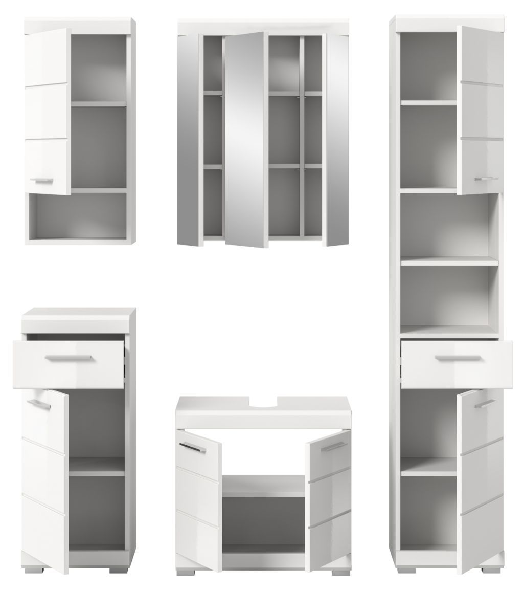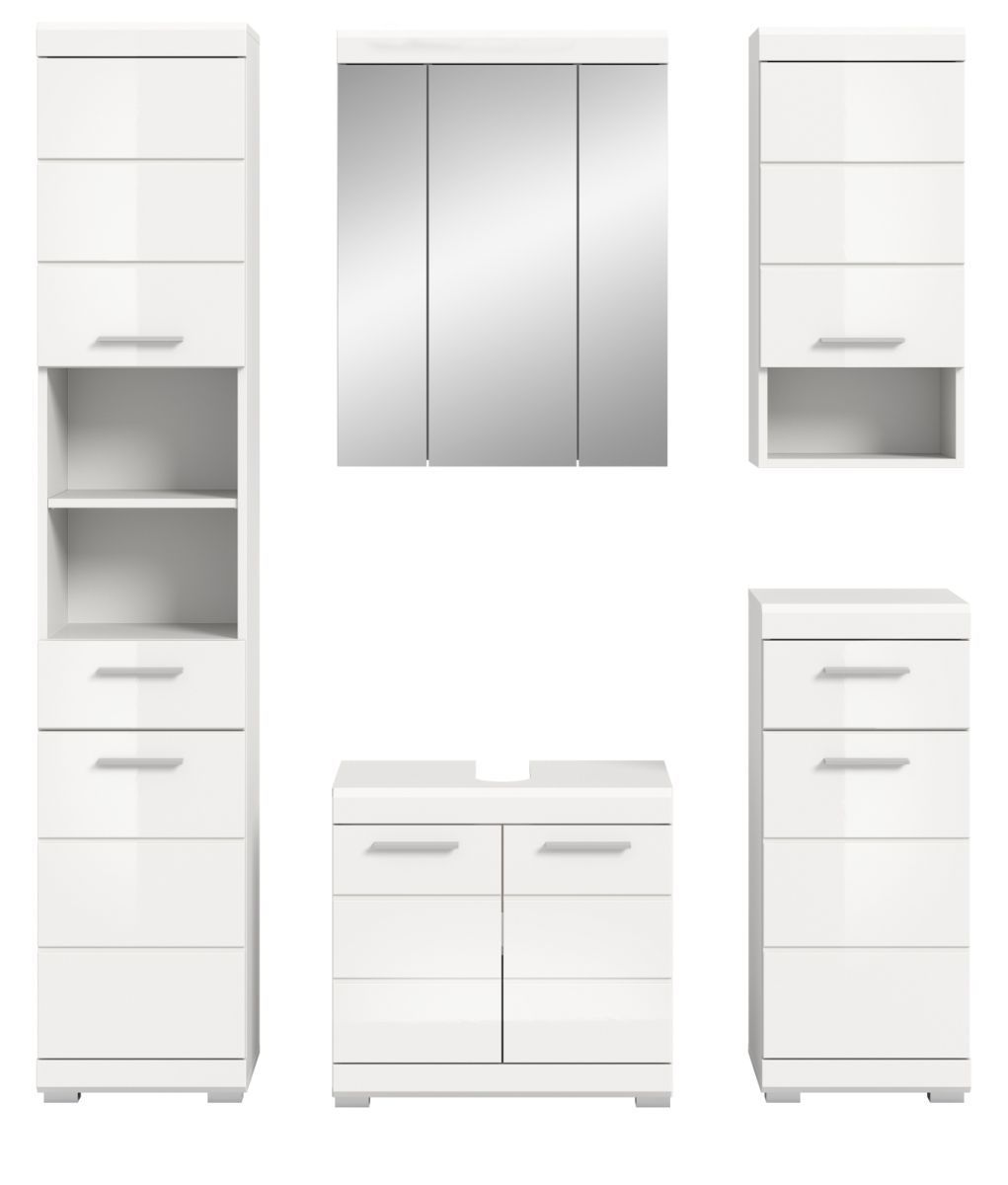 Badmöbel Set Badezimmer komplett 5-tlg. weiß Hochglanz Badkombination Möbelset Shawn