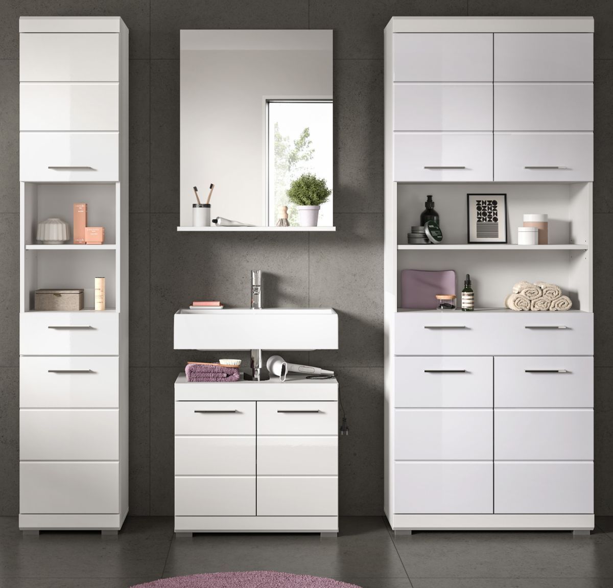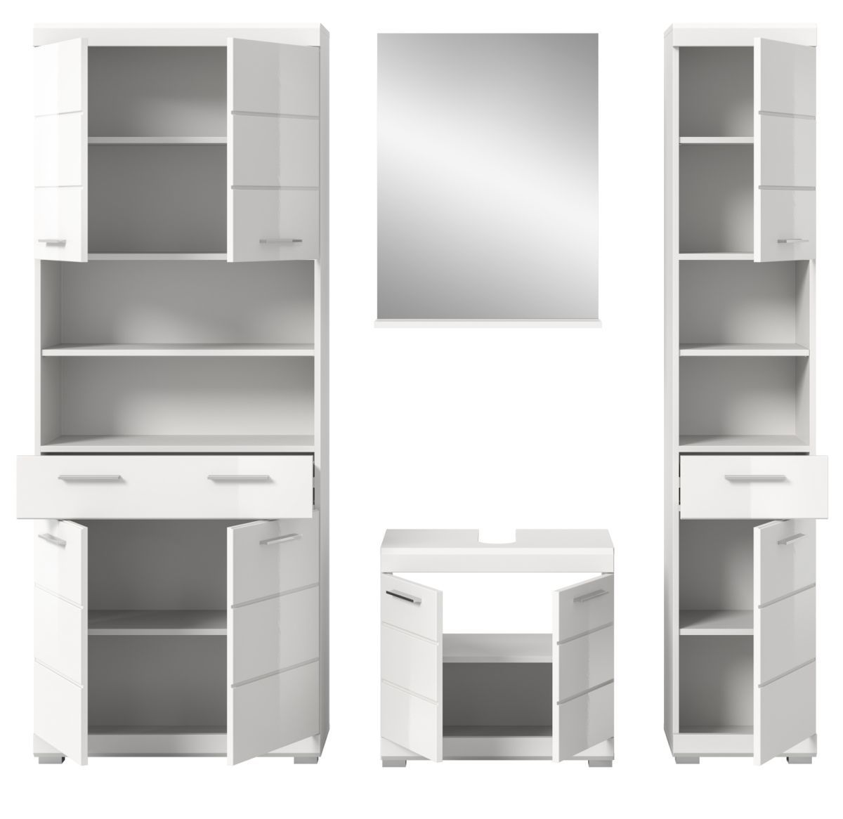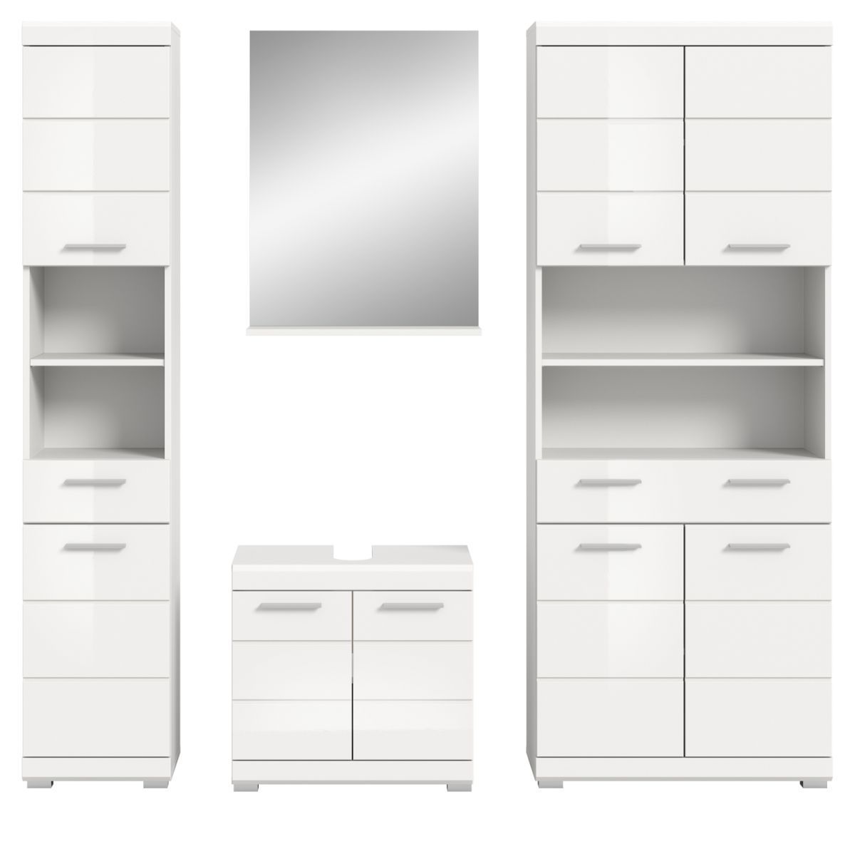 Badmöbel Set Badezimmer komplett Hochschrank breit in weiß Hochglanz Möbelset Shawn