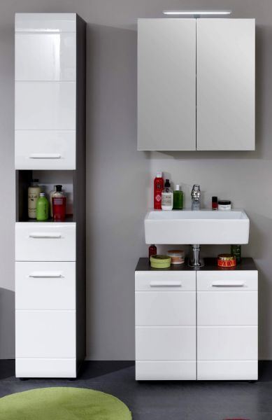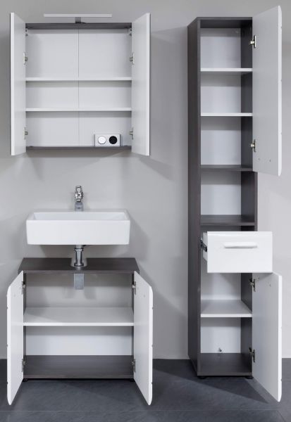 Trendteam Badmöbel Set Badezimmer Möbel weiß Hochglanz grau Sardegna Möbelset 3-tlg. Line