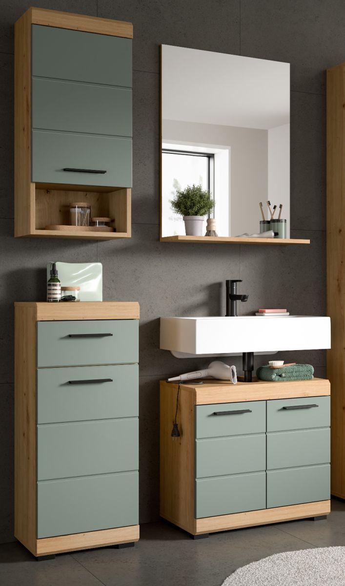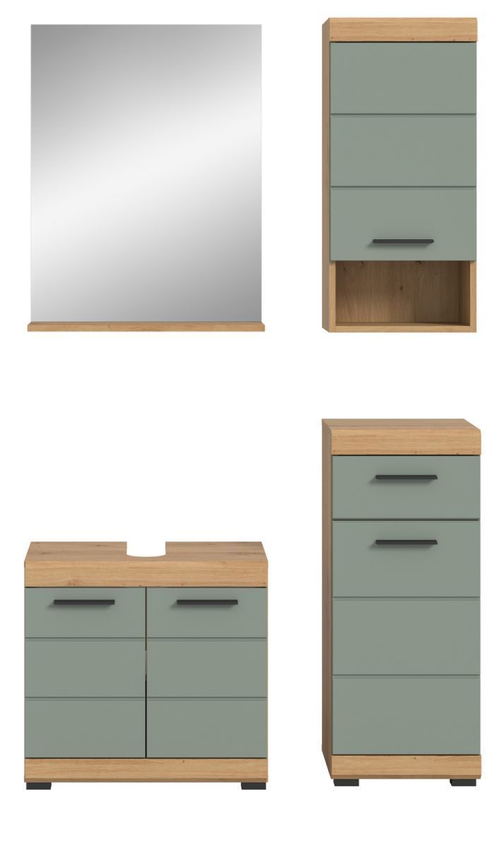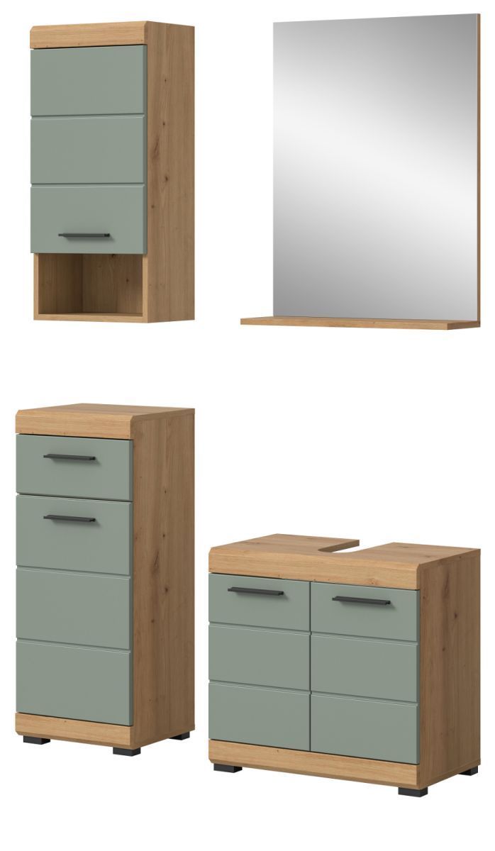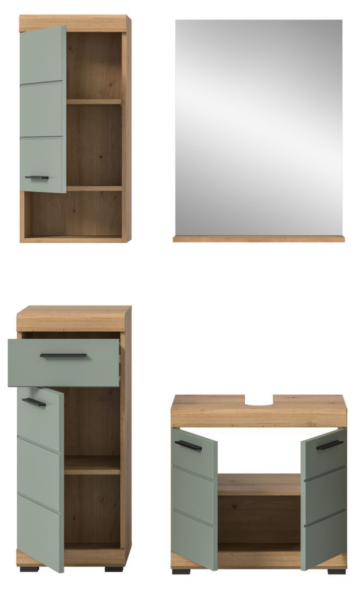 Badmöbel Set Badezimmer Schrankset 4-tlg Salbei grün Eiche Bad Möbelset 112 cm Shawn