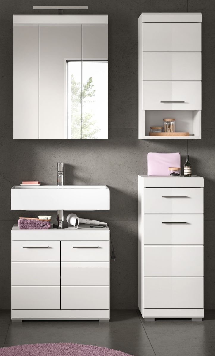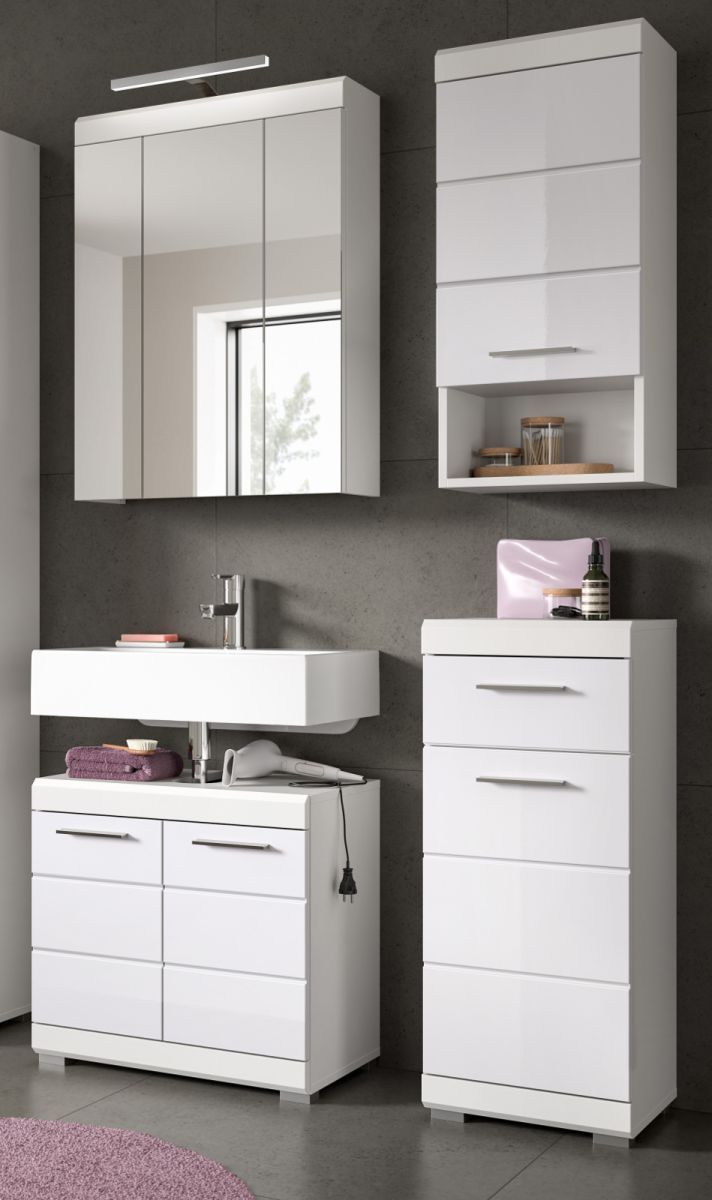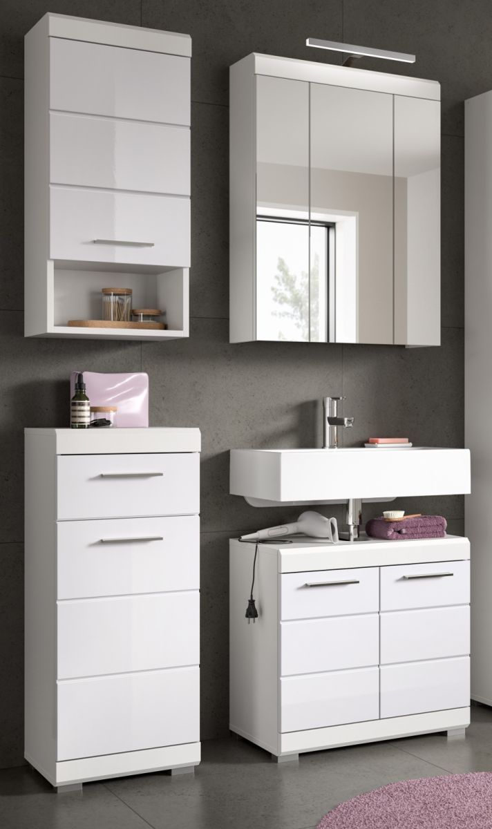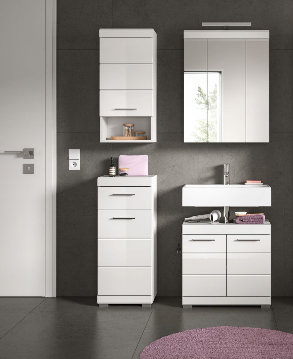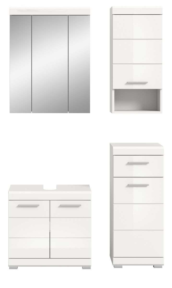 Badmöbel Set Badezimmer Schrankset weiß Hochglanz Bad Möbel 4-teilig Shawn 112 cm