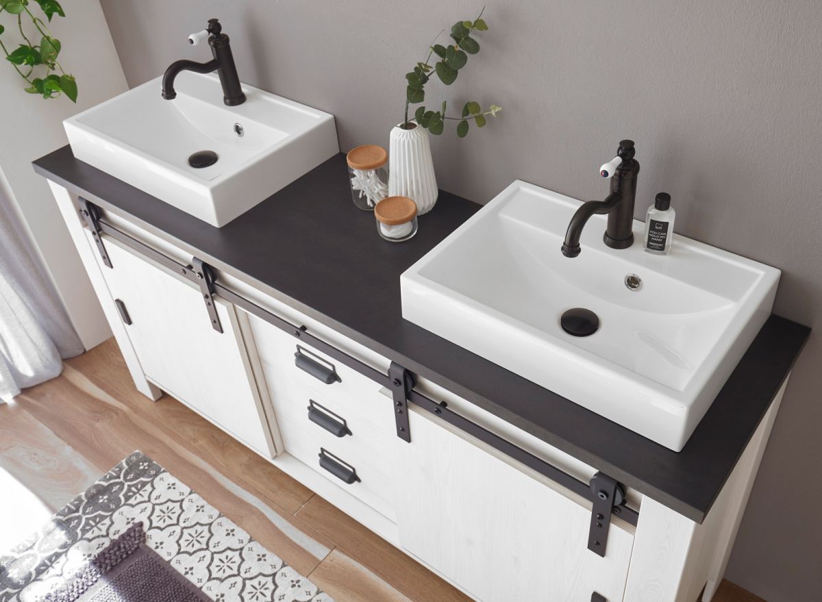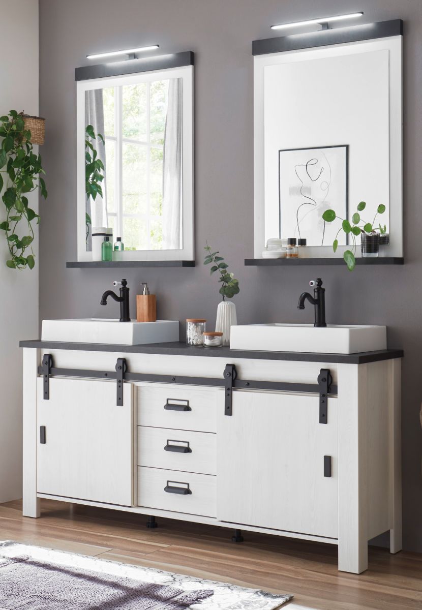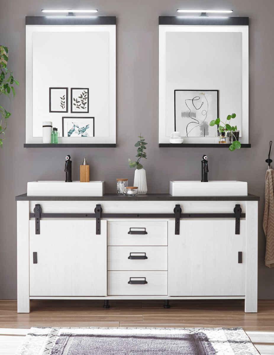 Badmöbel Set Badezimmer weiß Doppelwaschtisch mit Waschbecken Beleuchtung Stove