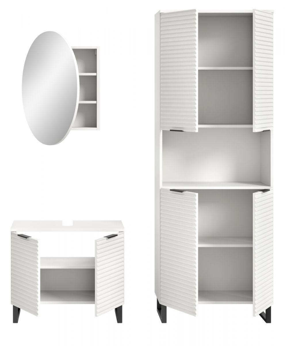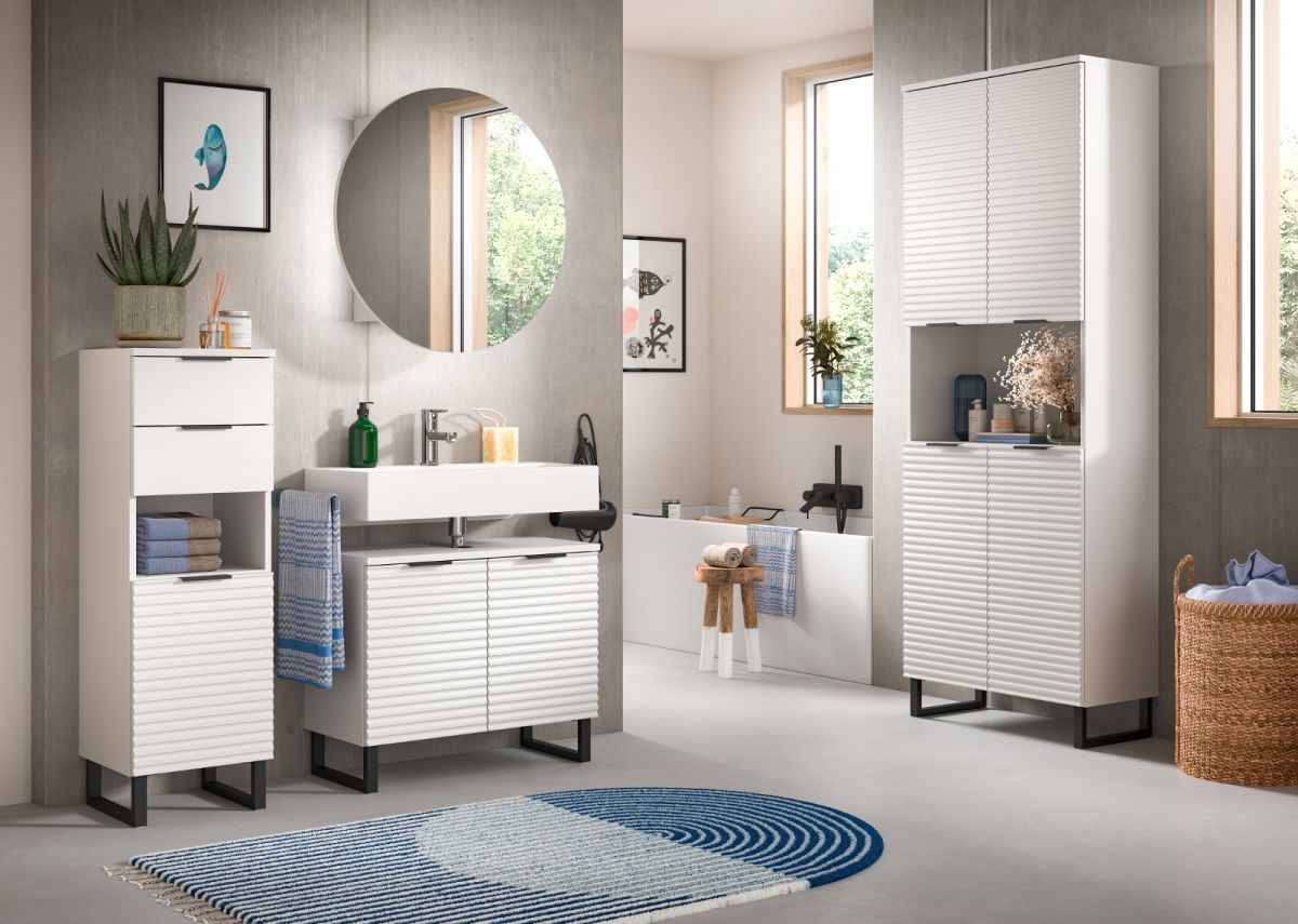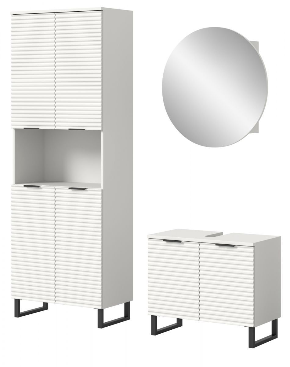 Badmöbel Set Badezimmer weiß mit 3-D Struktur Bad Möbel Schrankset Roove Soft-Close