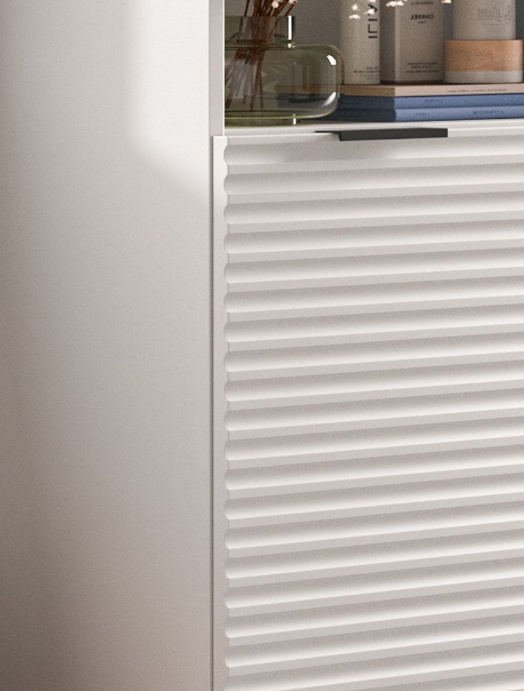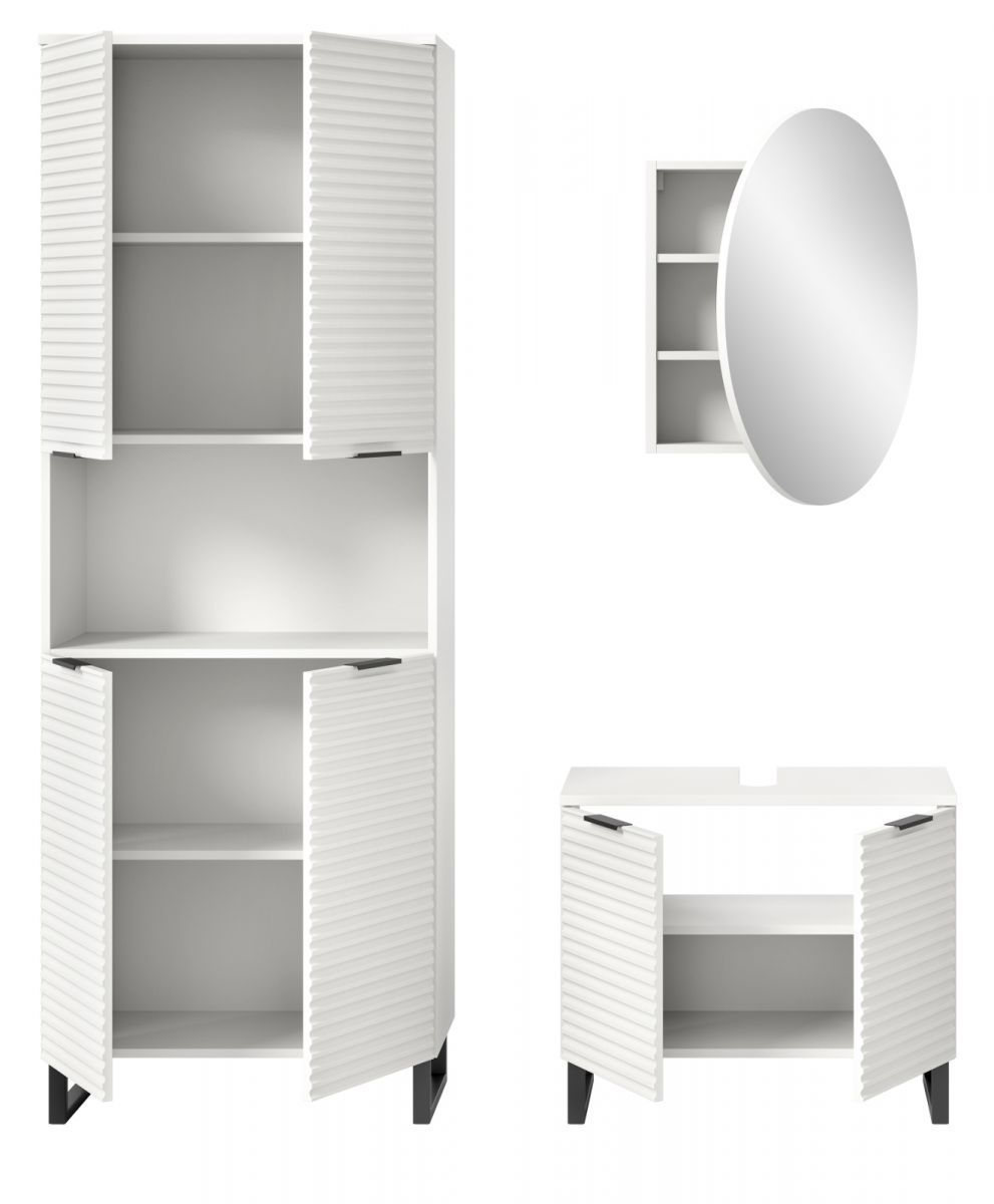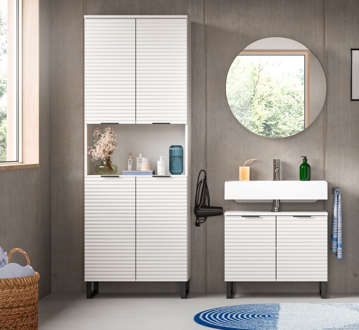 Badmöbel Set Badezimmer weiß mit 3-D Struktur Bad Möbel Schrankset Roove Soft-Close