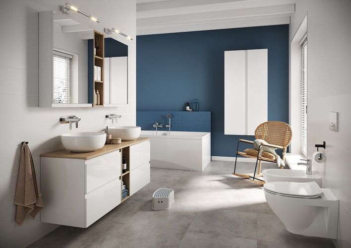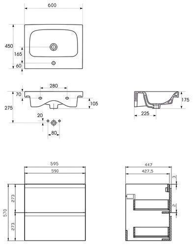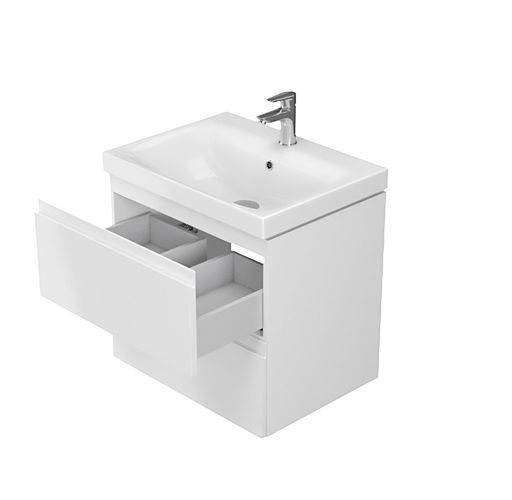Badmöbel Set Badezimmerschrank mit Keramikwaschbecken, 2-Schubladen MODUO 60 Weiß
