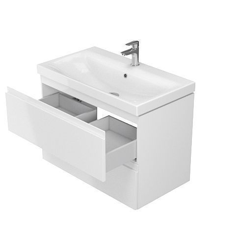 Badmöbel Set Badezimmerschrank mit Keramikwaschbecken, 2-Schubladen MODUO 80 Weiß