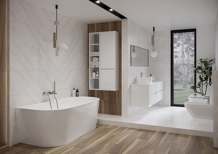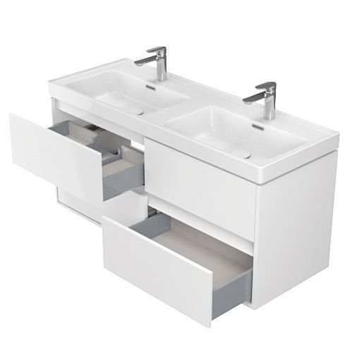 Badmöbel Set Badezimmerschrank mit Keramikwaschbecken, 4-Schubladen CREA 120 Weiß
