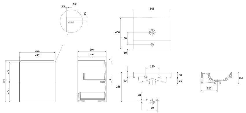 Badmöbel Set Badezimmerschrank mit Keramikwaschbecken LARGA 50 Weiß, Golden Griffe