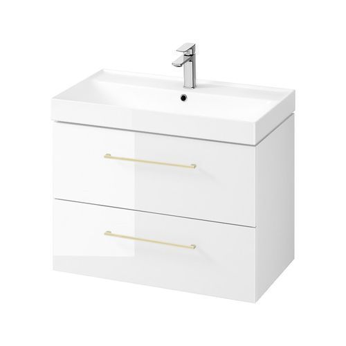 Badmöbel Set Badezimmerschrank mit Keramikwaschbecken LARGA 80 Weiß, Golden Griffe