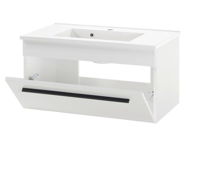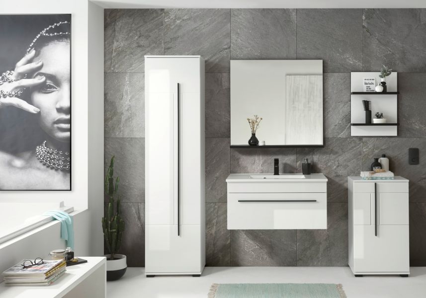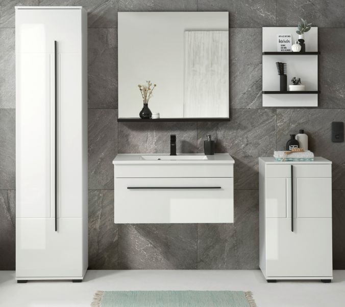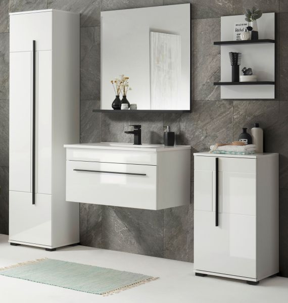 Badmöbel Set Design-D in weiß Hochglanz Badkombination komplett MIT Waschbecken