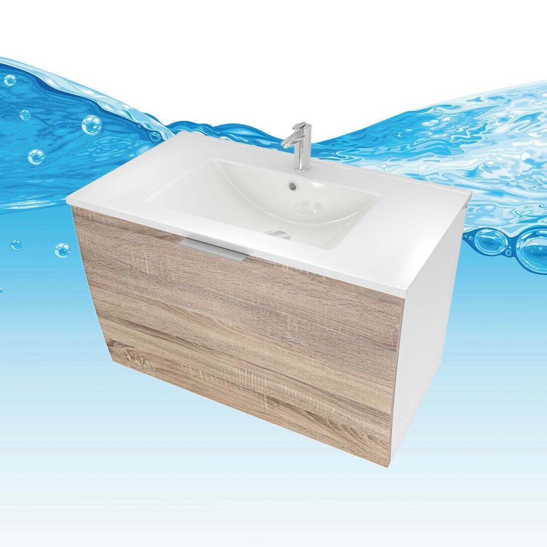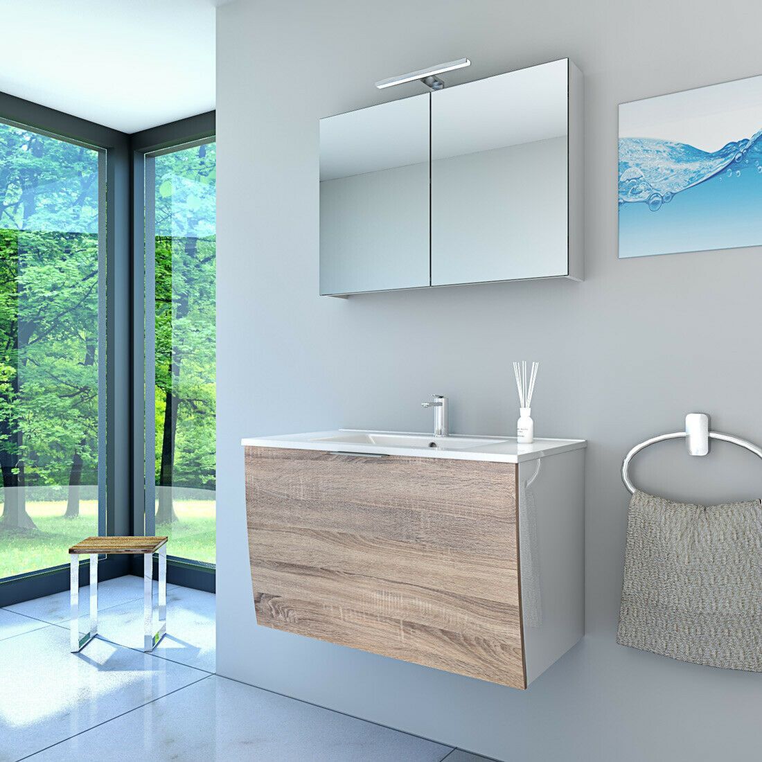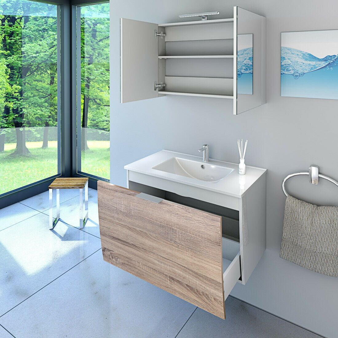 Badmöbel Set Gently 1 V1 Weiß/Eiche MDF Waschtisch 80cm