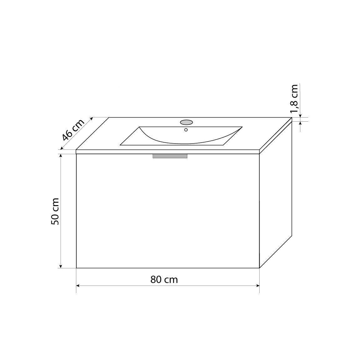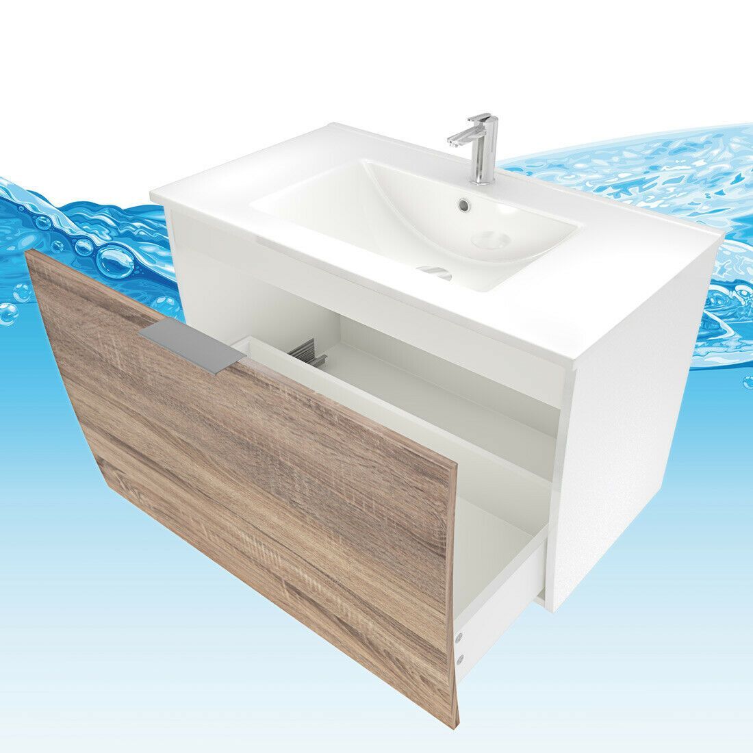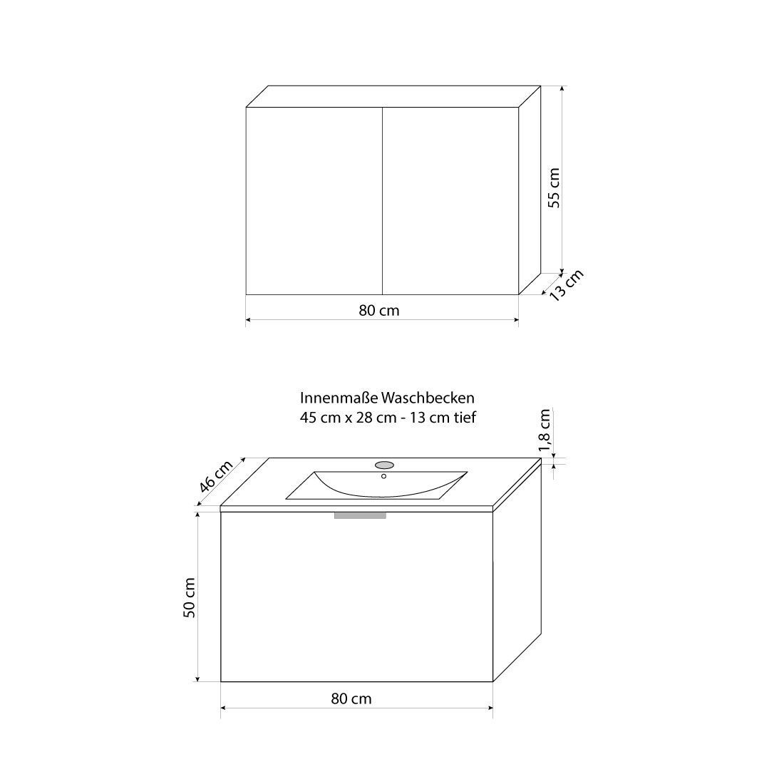 Badmöbel Set Gently 1 V1 Weiß/Eiche MDF Waschtisch 80cm