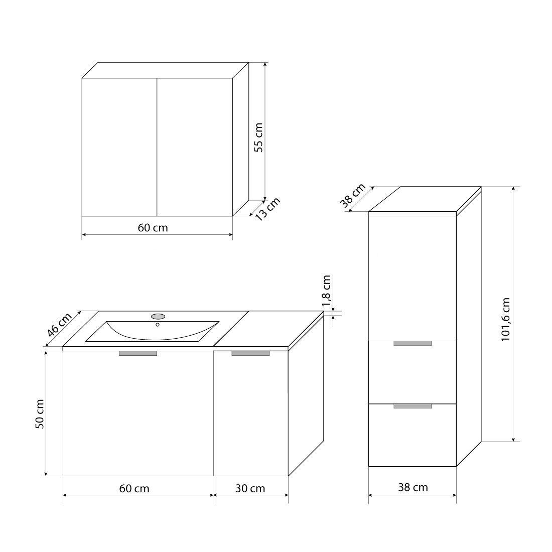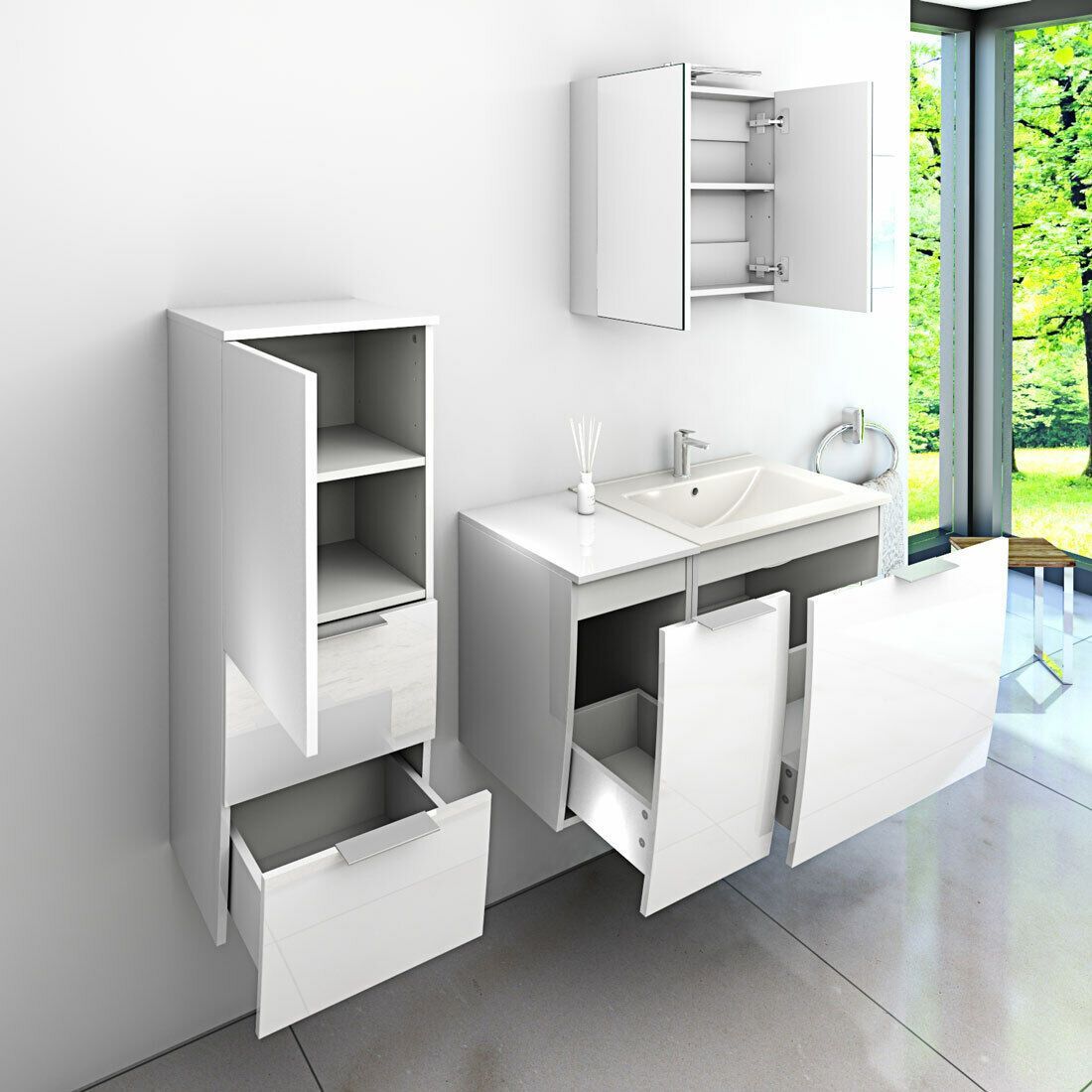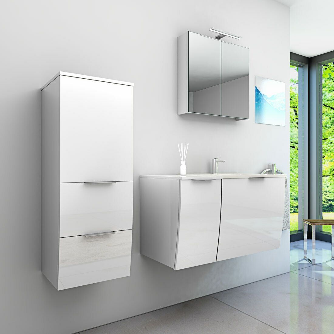 Badmöbel Set Gently 1 V2 L Weiß MDF Waschtisch 90cm