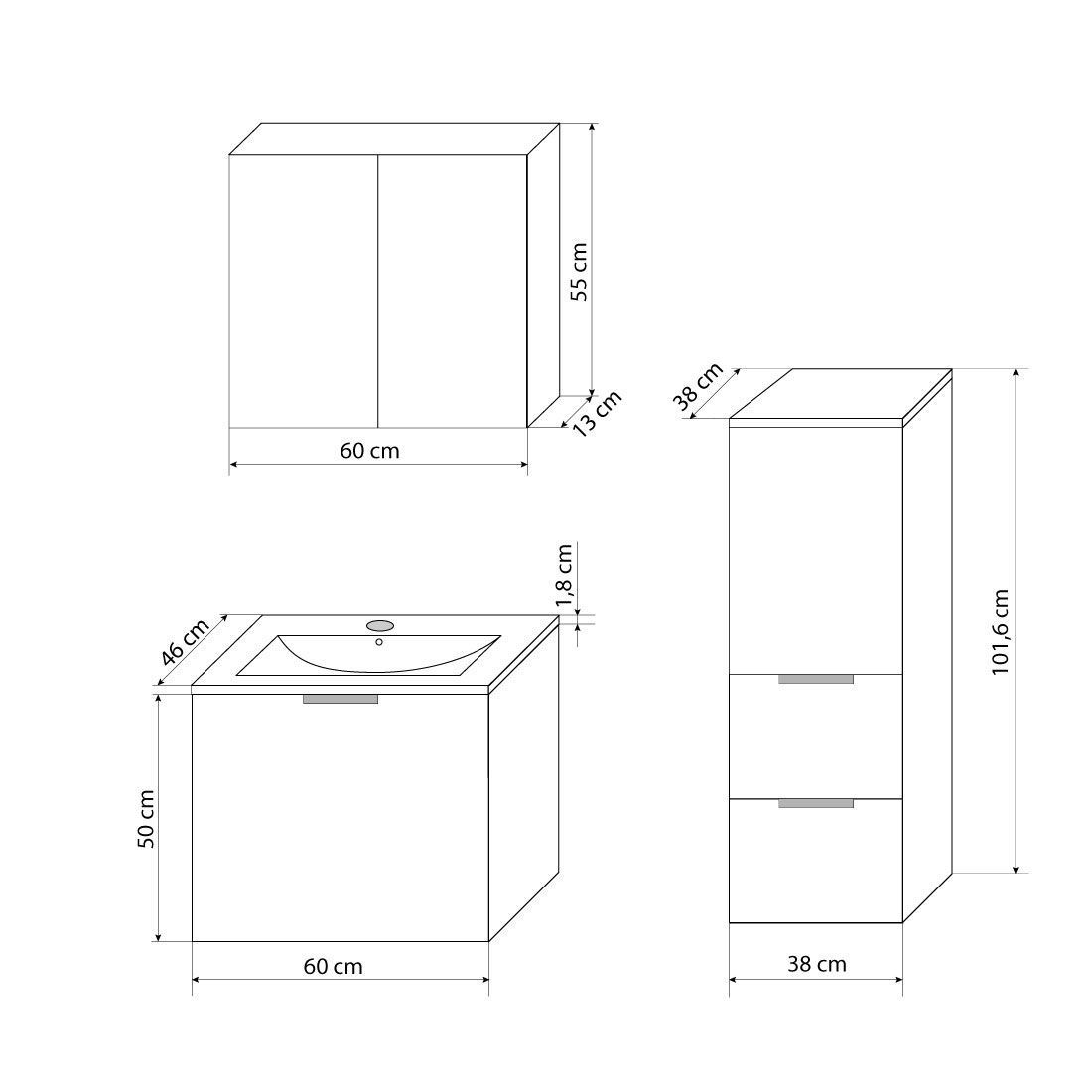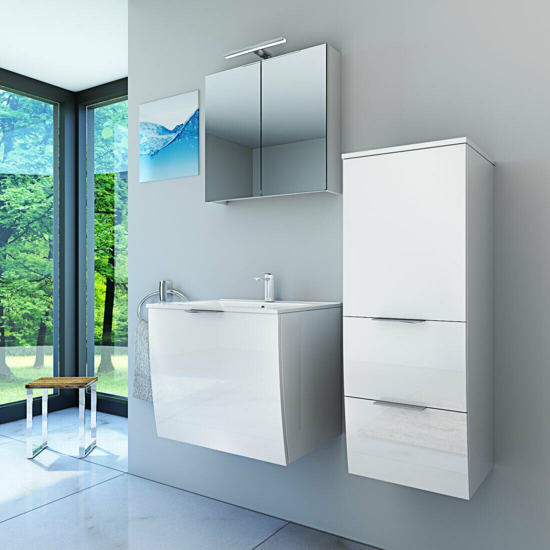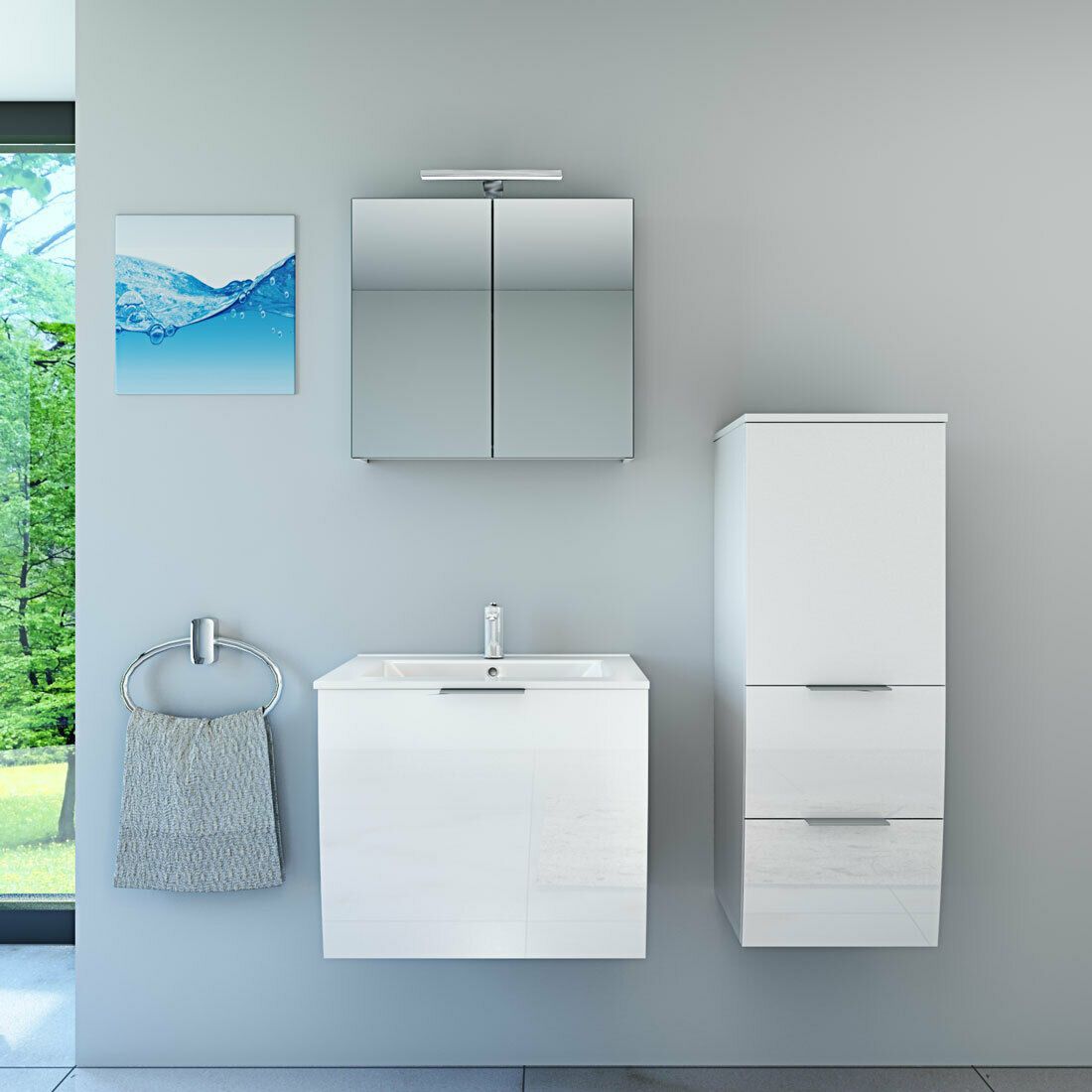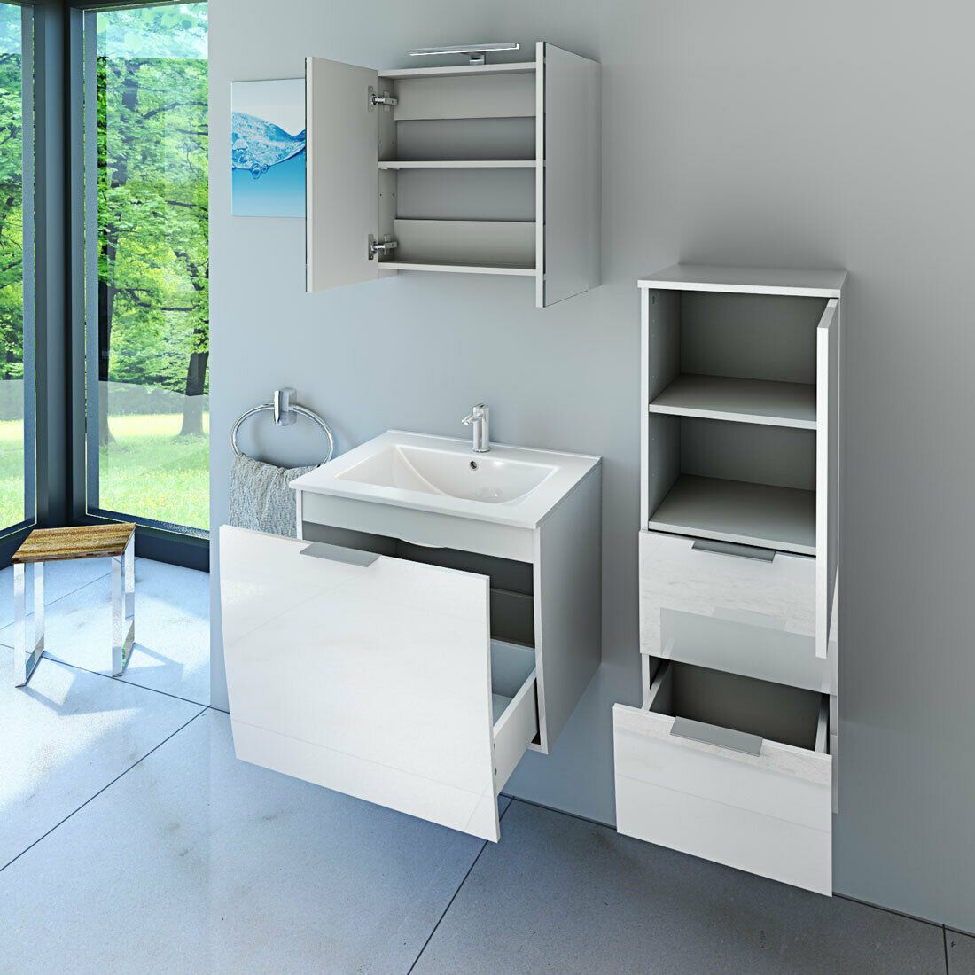 Badmöbel Set Gently 1 V2 R Weiß MDF Waschtisch 60cm