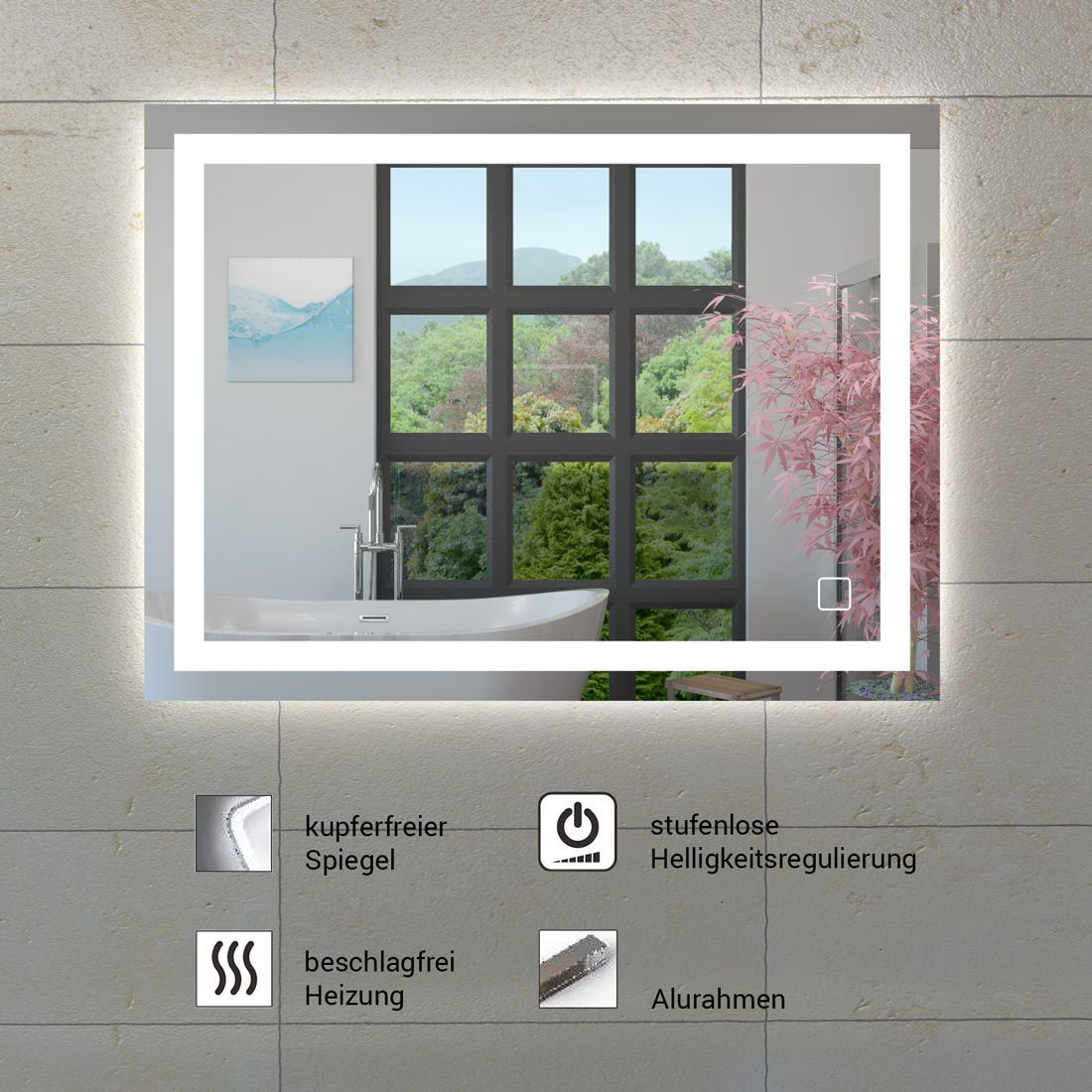 Badmöbel Set Gently 3 V1 Weiß/Grau MDF Waschtisch 70cm mit Leuchtspiegel LSP03