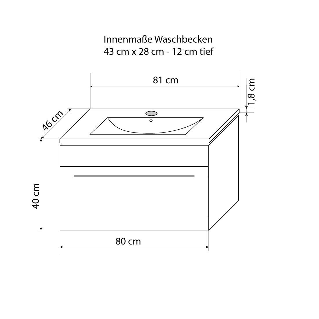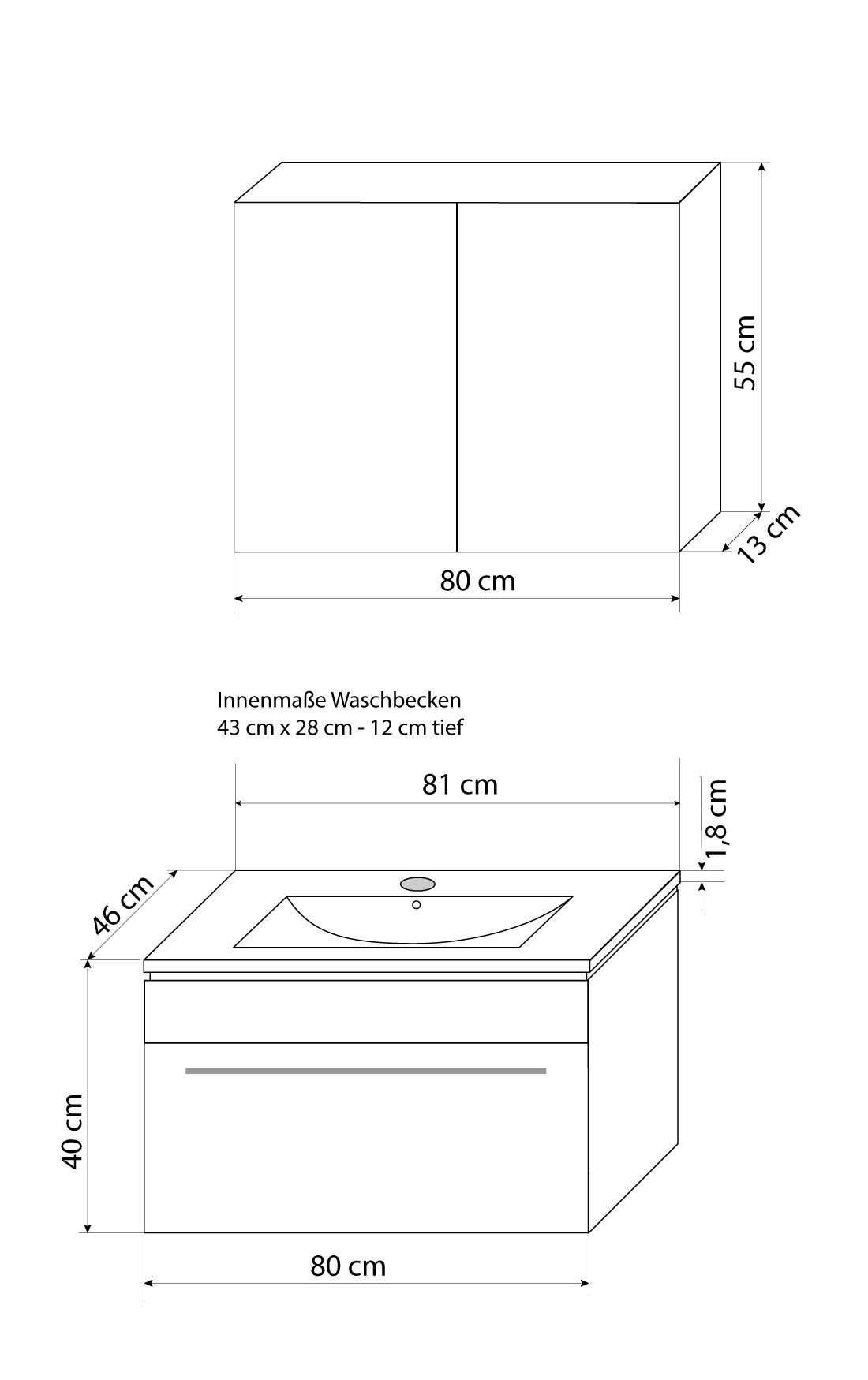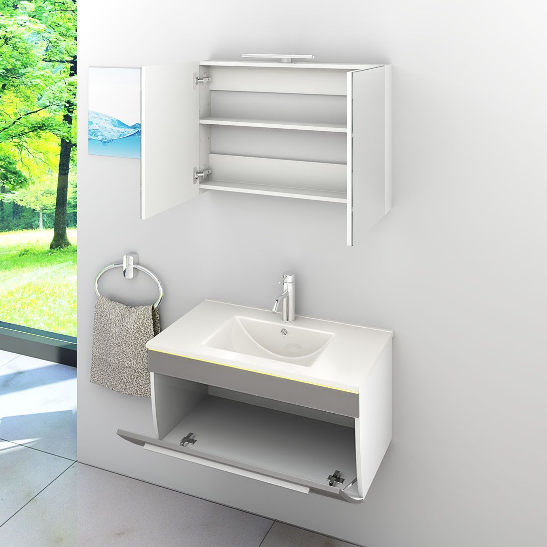 Badmöbel Set Gently 3 V1 Weiß/Grau MDF Waschtisch 80cm