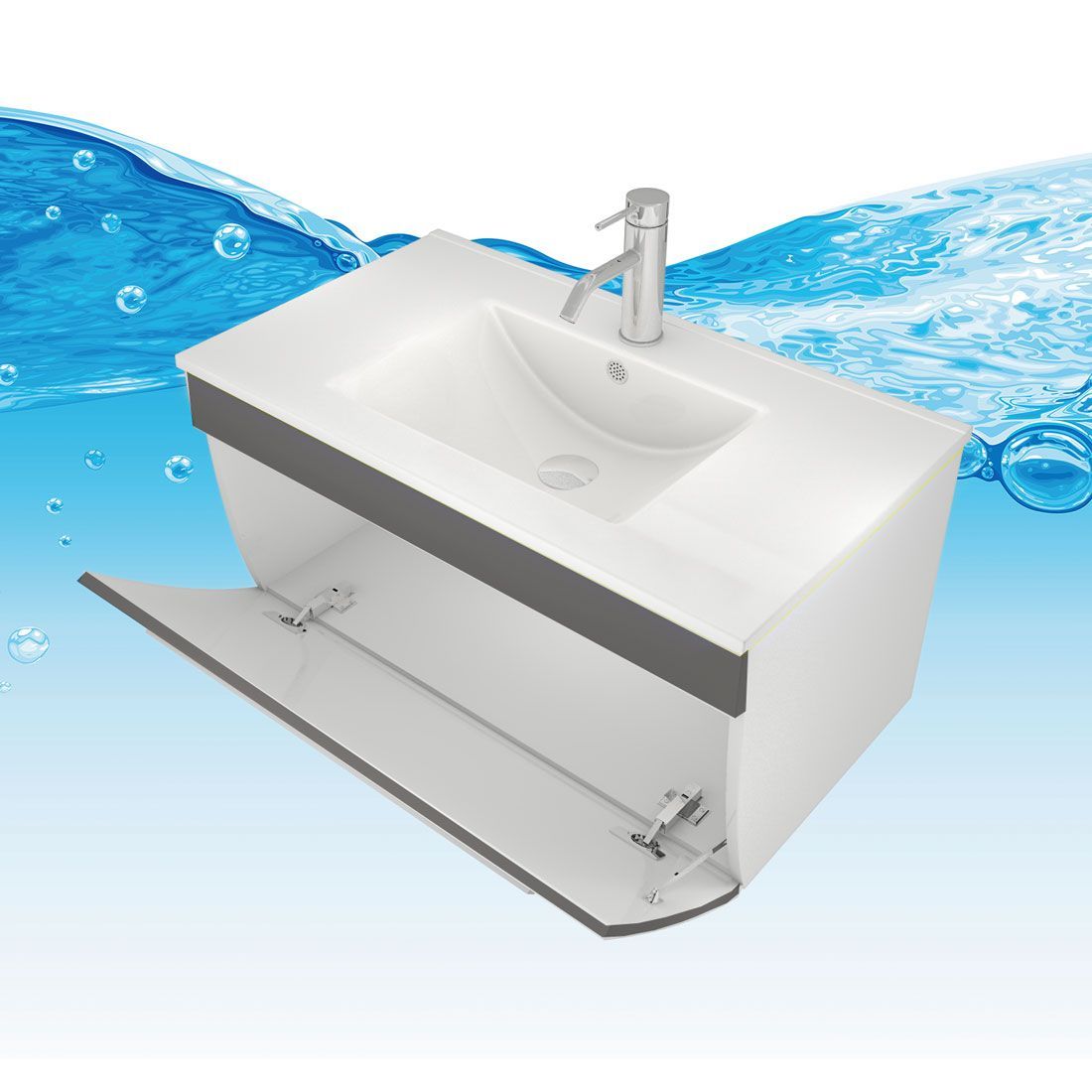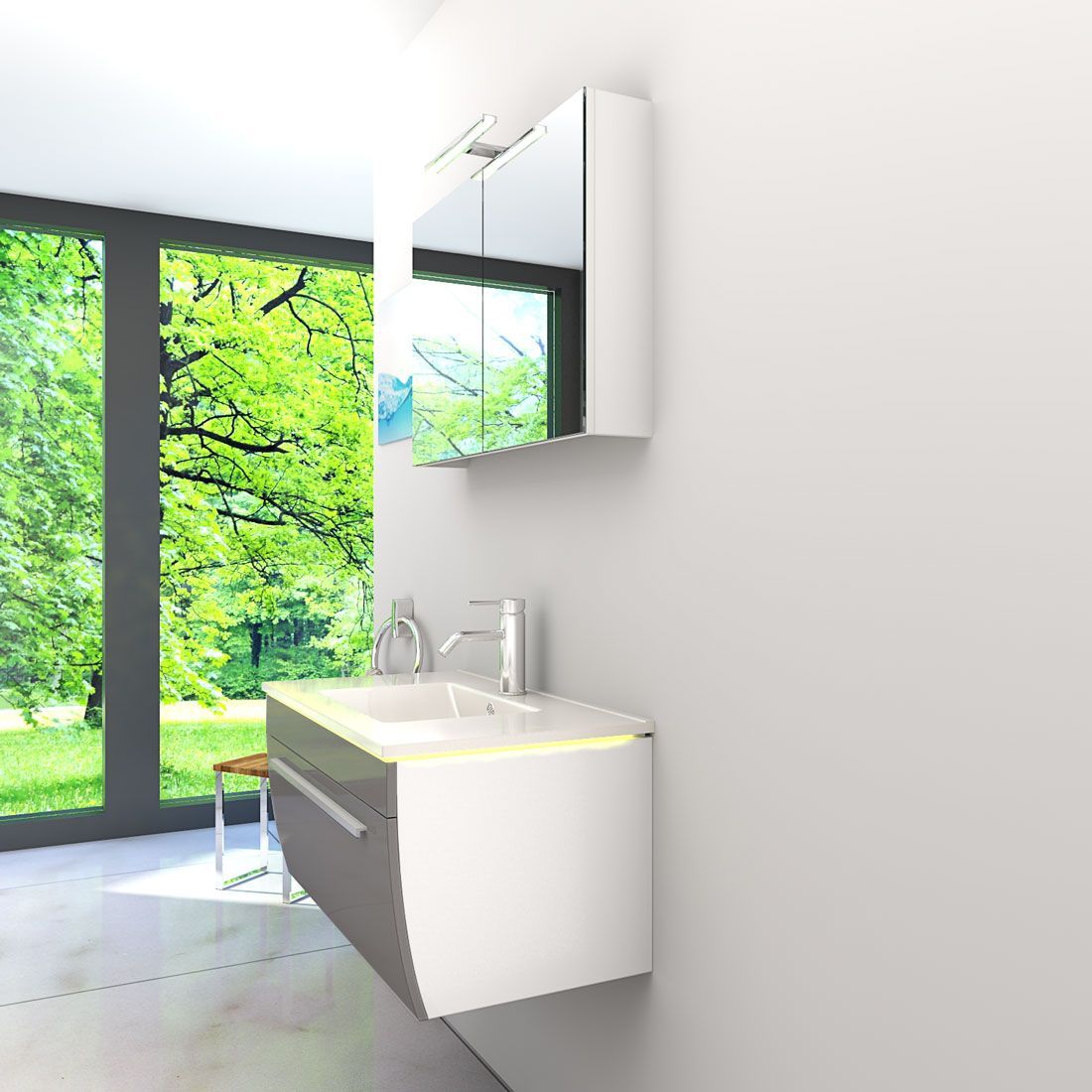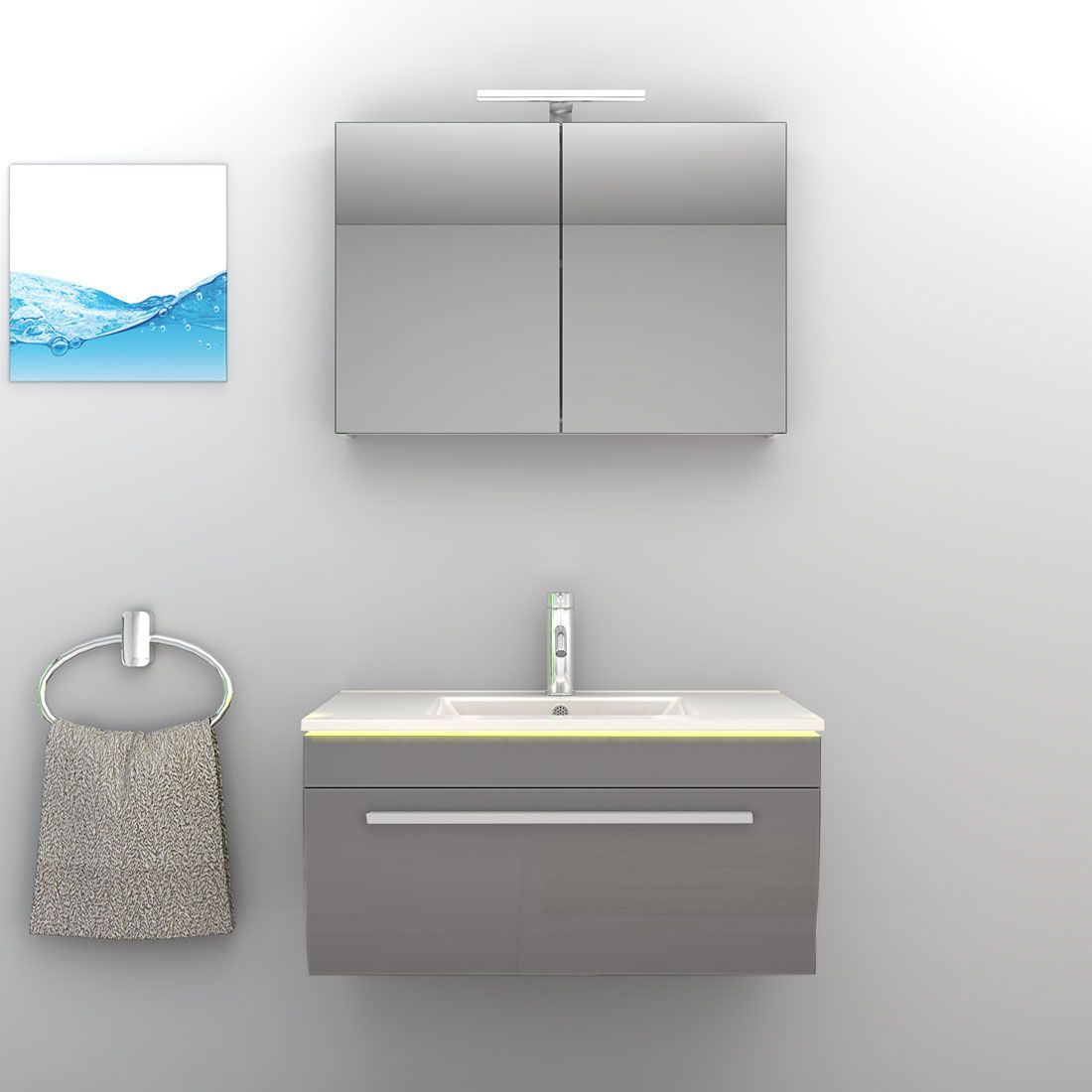 Badmöbel Set Gently 3 V1 Weiß/Grau MDF Waschtisch 80cm