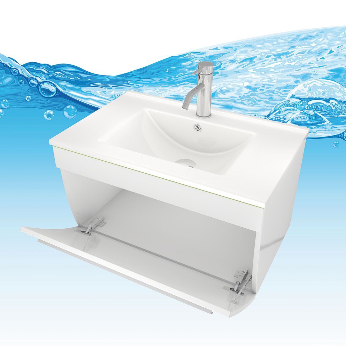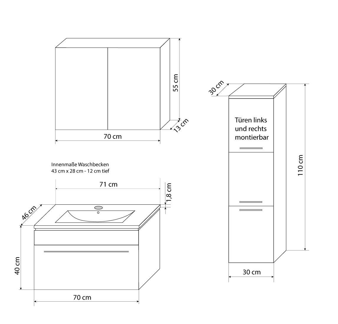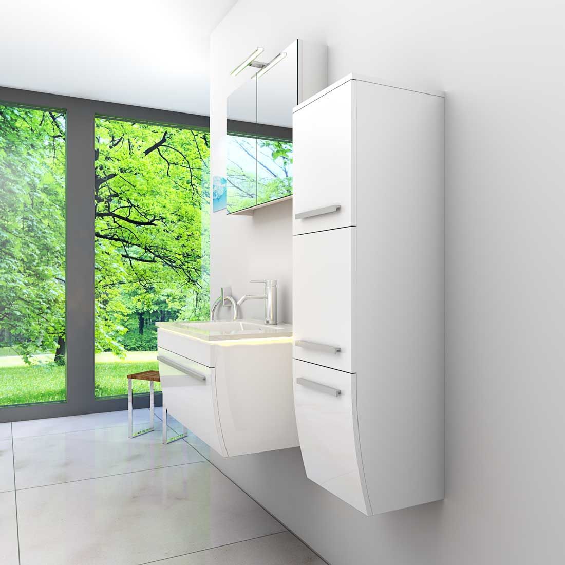 Badmöbel Set Gently 3 V2-R Weiß Badezimmermöbel Badspiegel Waschtisch 80 cm