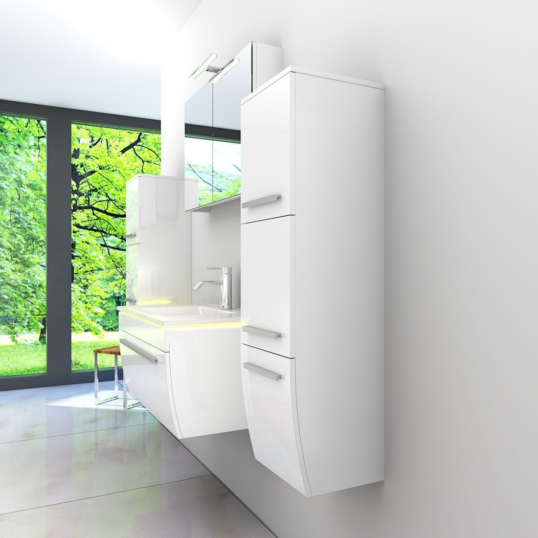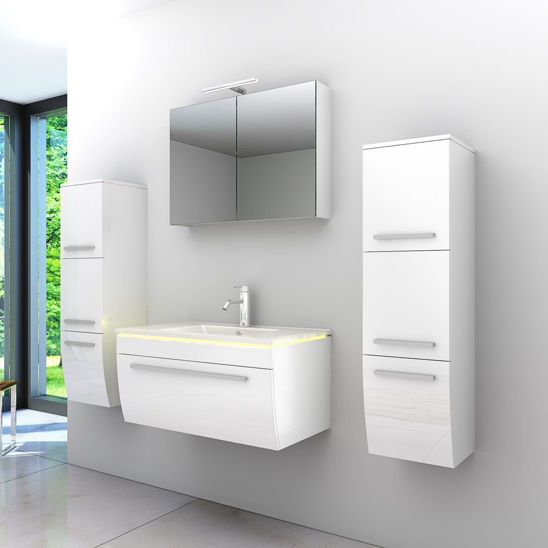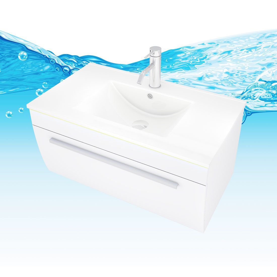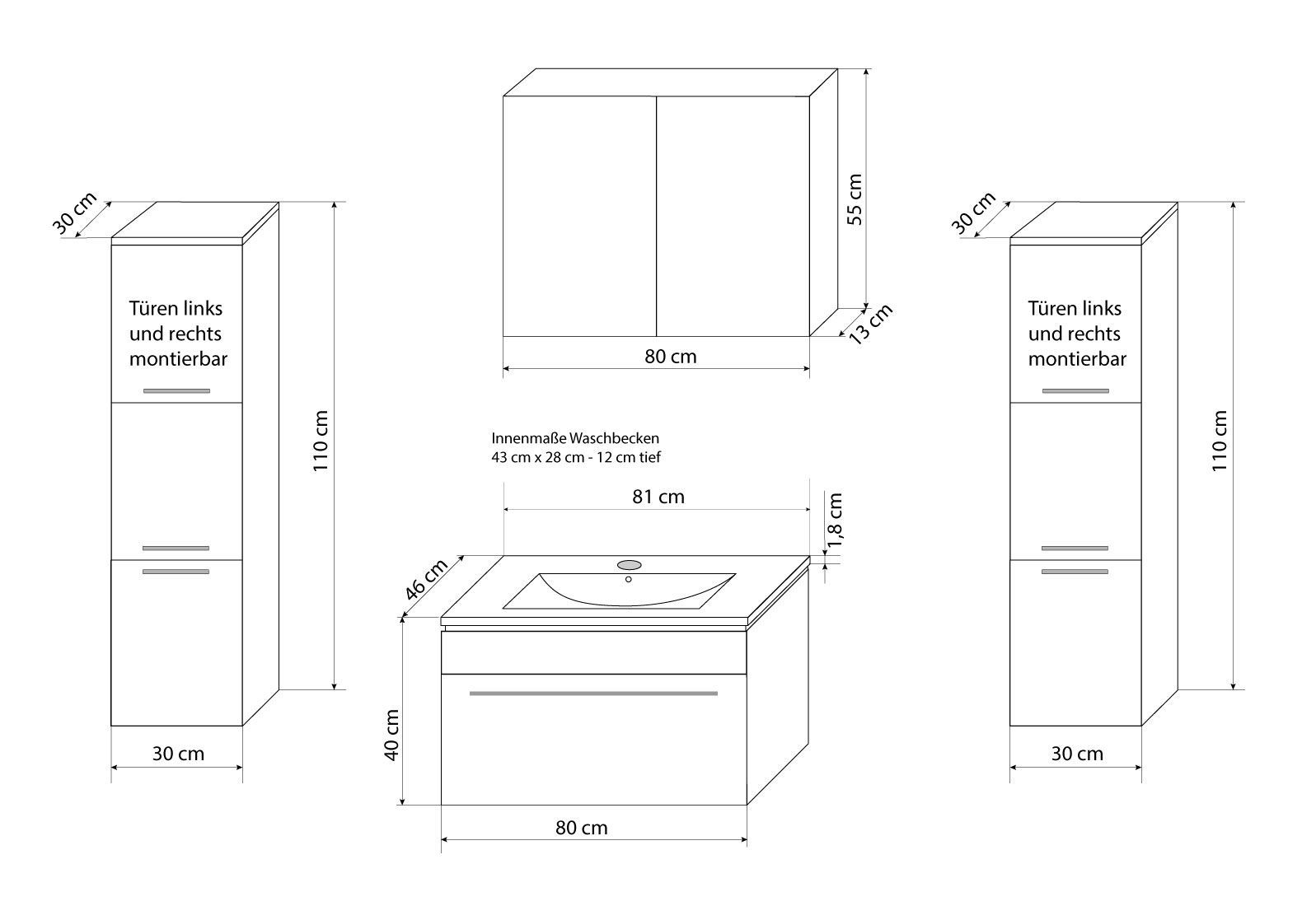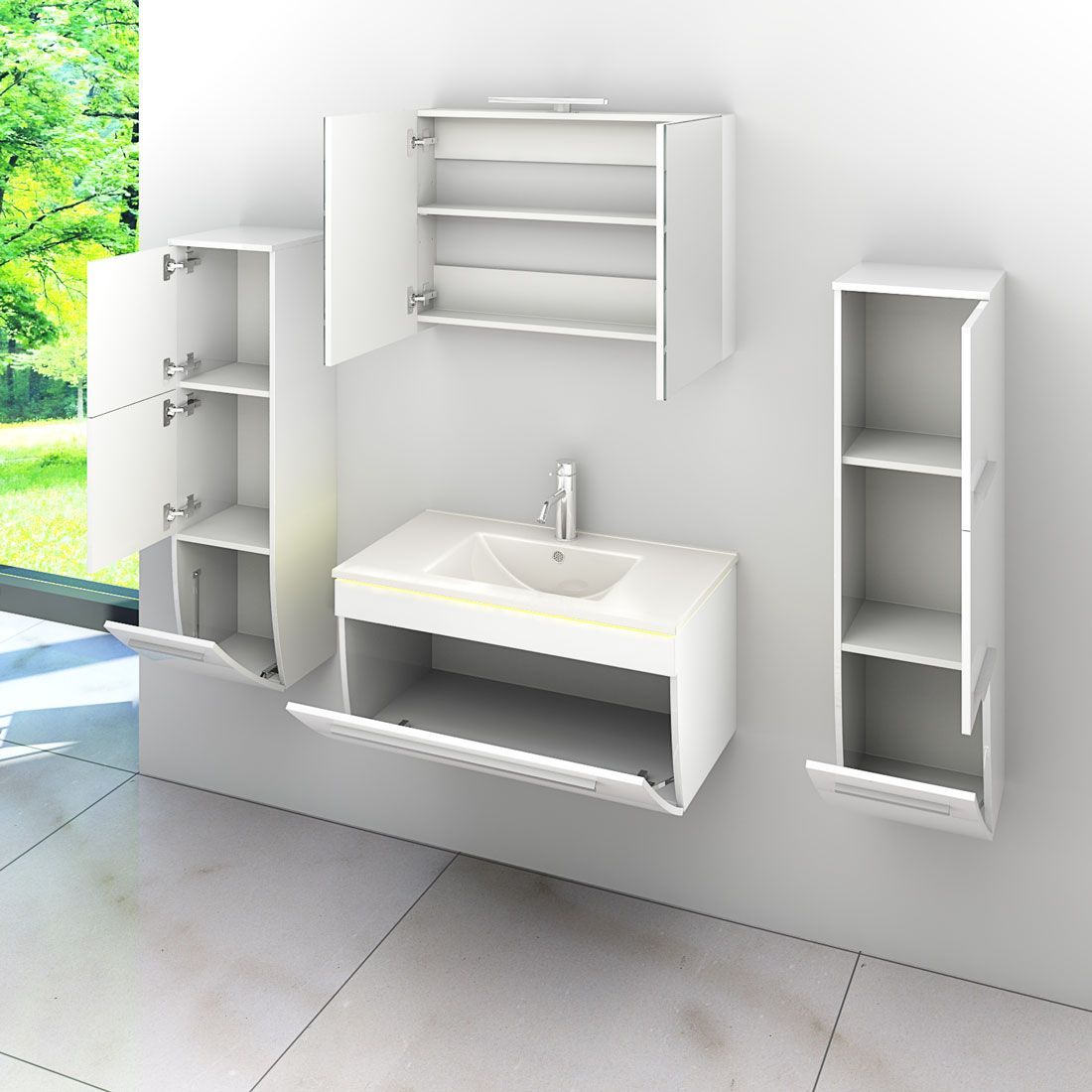 Badmöbel Set Gently 3 V3 Weiß Badezimmermöbel Badspiegel Waschtisch 80 cm