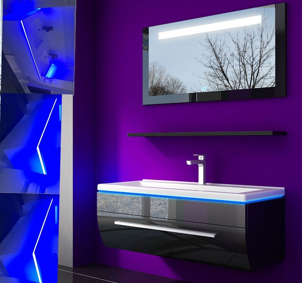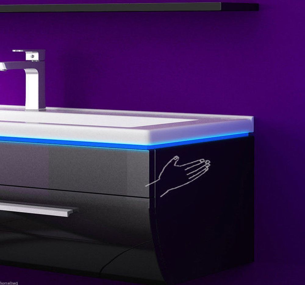 Badmöbel Set Günstig Kaufen 70 cm Schwarz Lackiert Komplett Hochglanz 4 Teilig Bad .