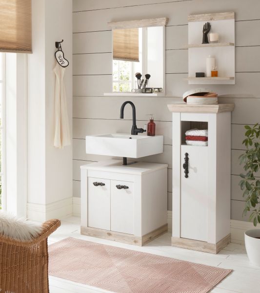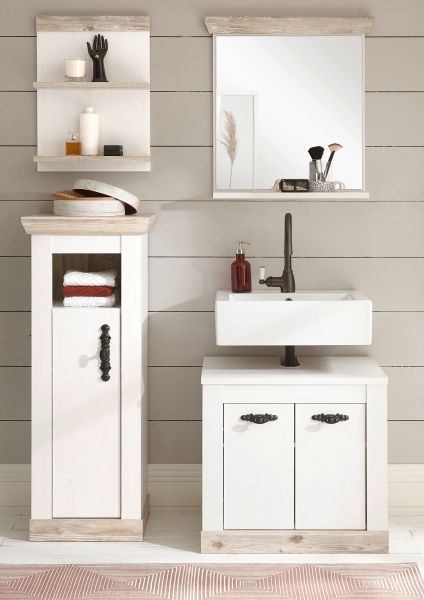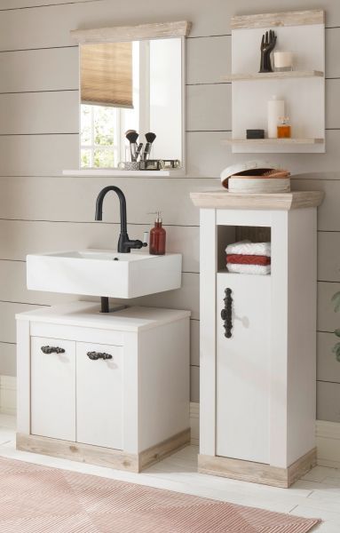 Badmöbel Set in weiß Pinie Badezimmer Bad Möbelset 4-teilig Rovola 122 cm