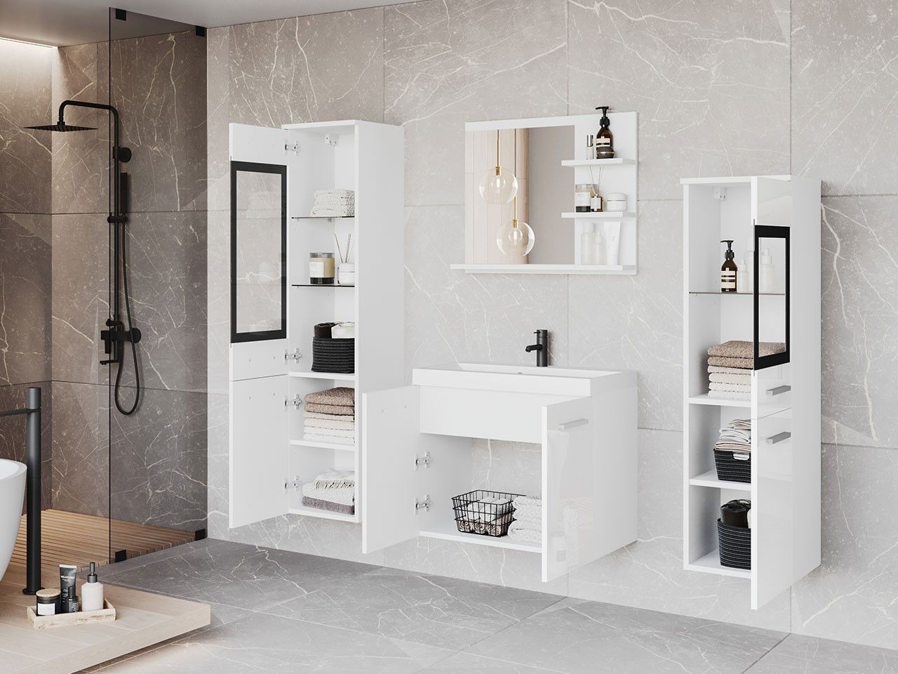 Badmöbel-Set Madrit I mit Waschbecken Stilvoll Badezimmer Badmoebel