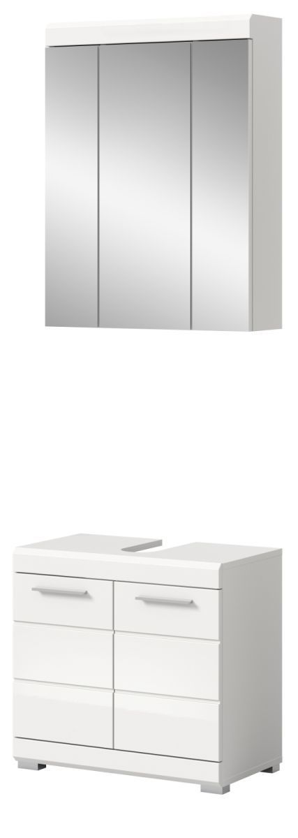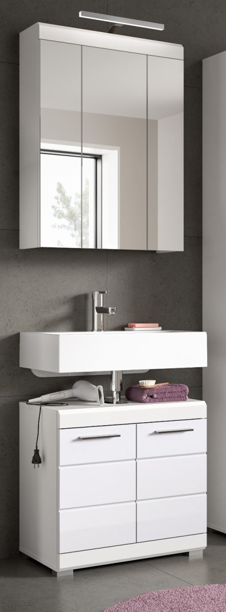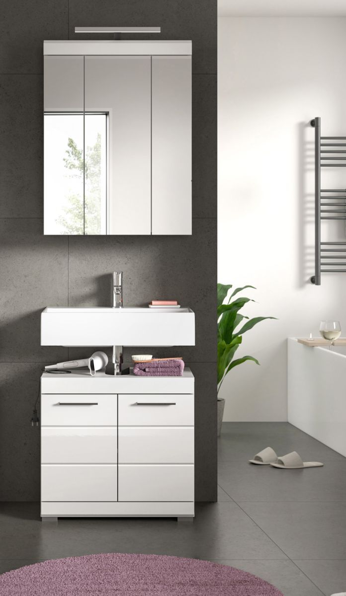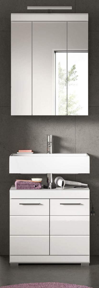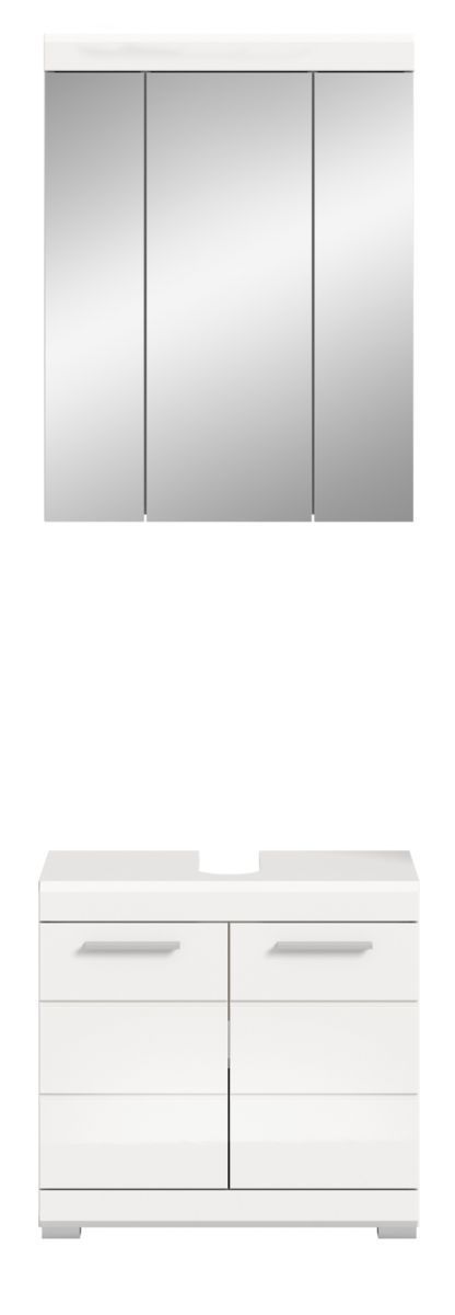 Badmöbel Set mit Waschbeckenunterschrank Spiegelschrank in weiß Hochglanz Shawn 60 cm