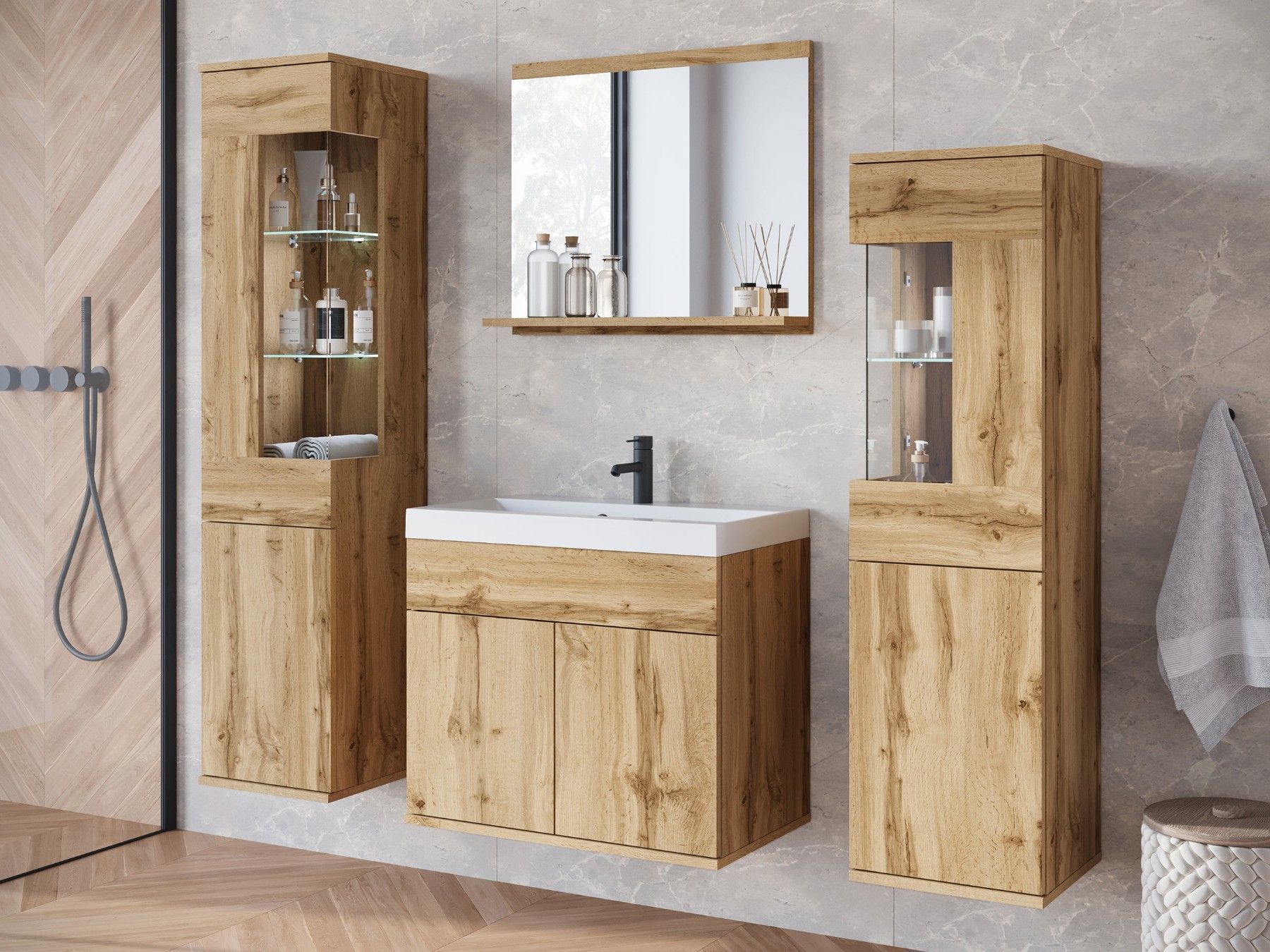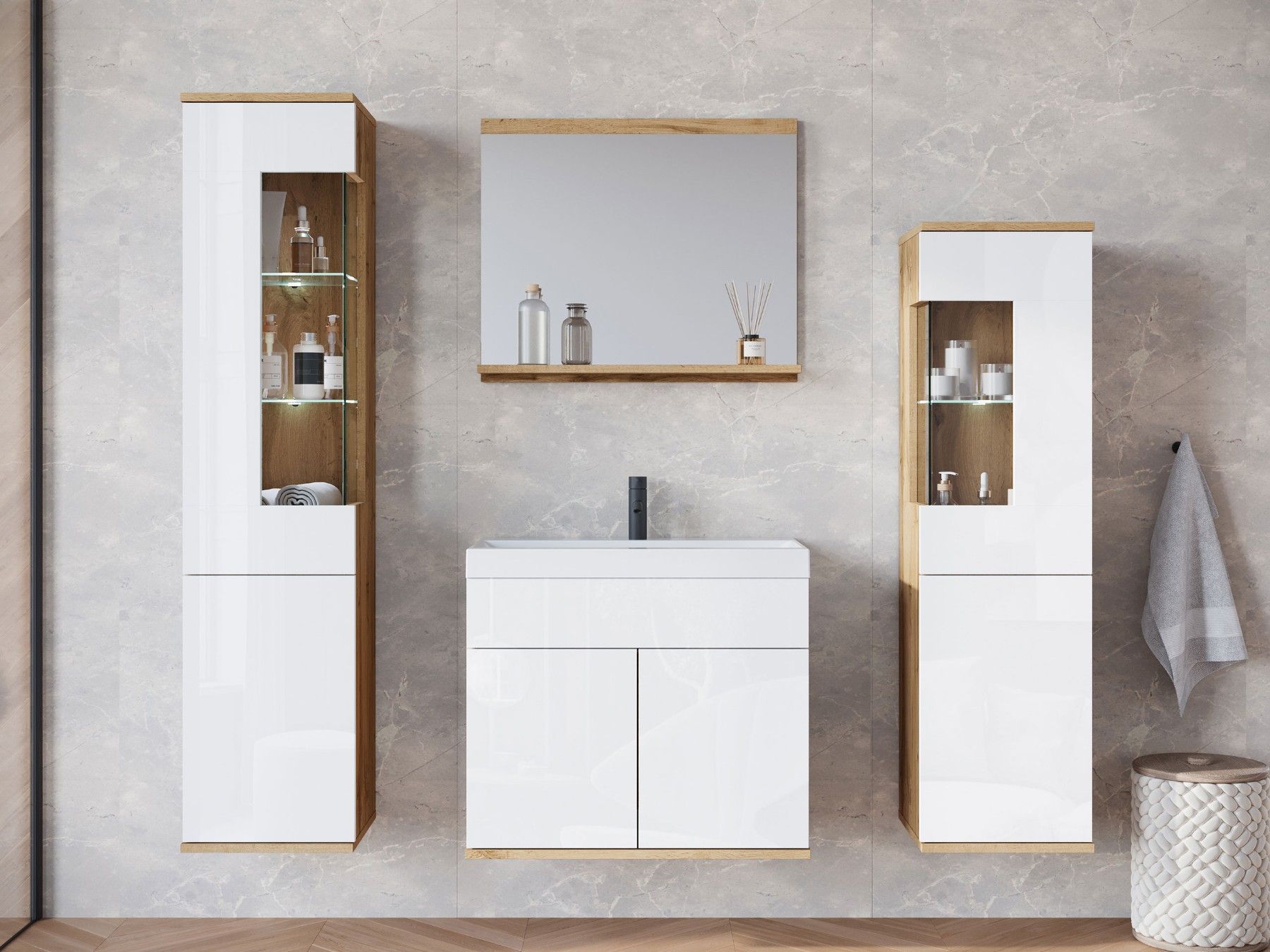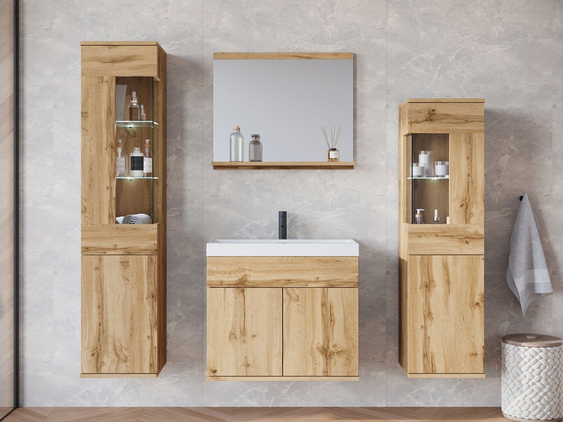 Badmöbel-Set Nairobi Badezimmer Komplett Modern Stil Badmoebel mit Waschbecken