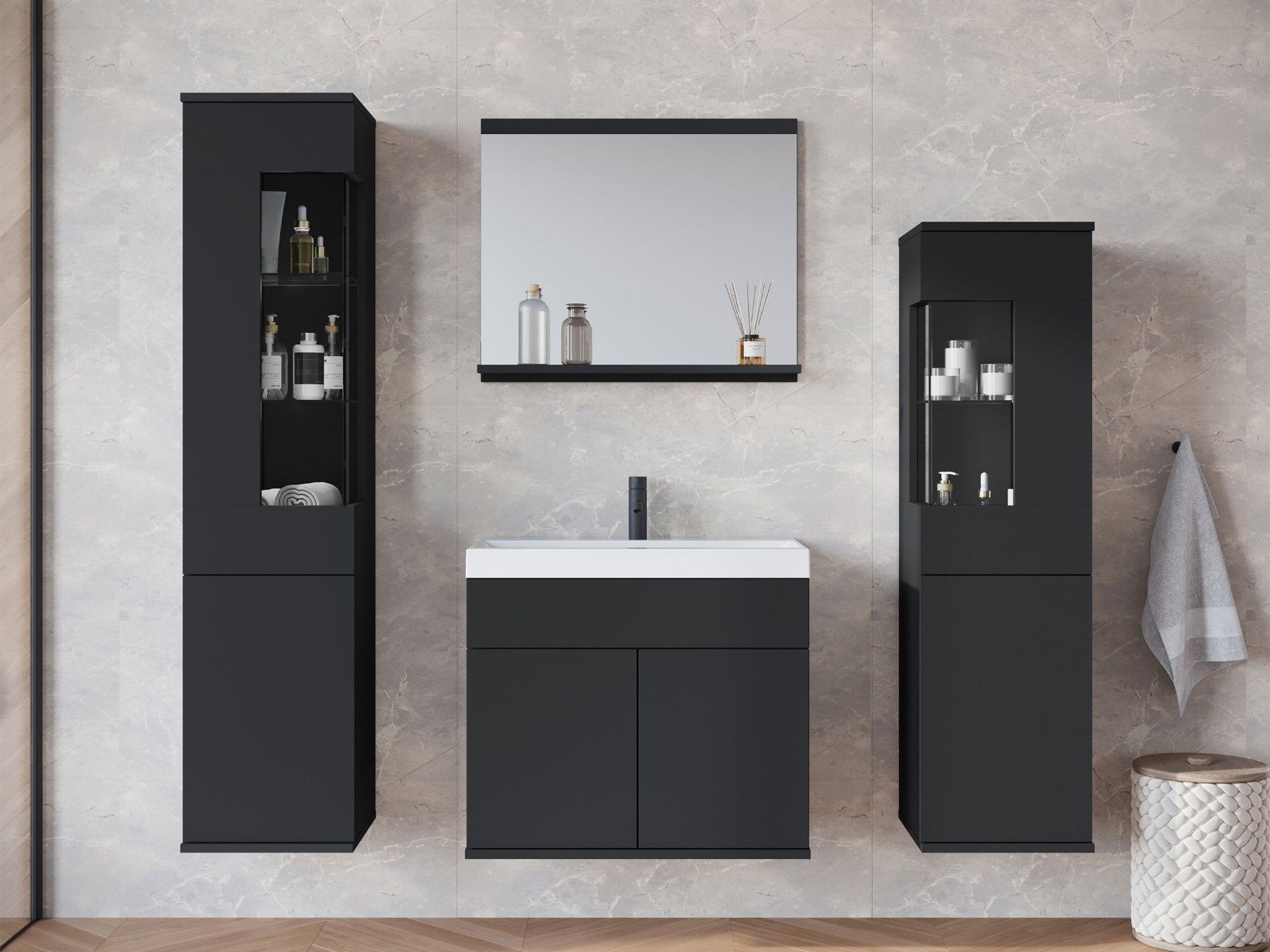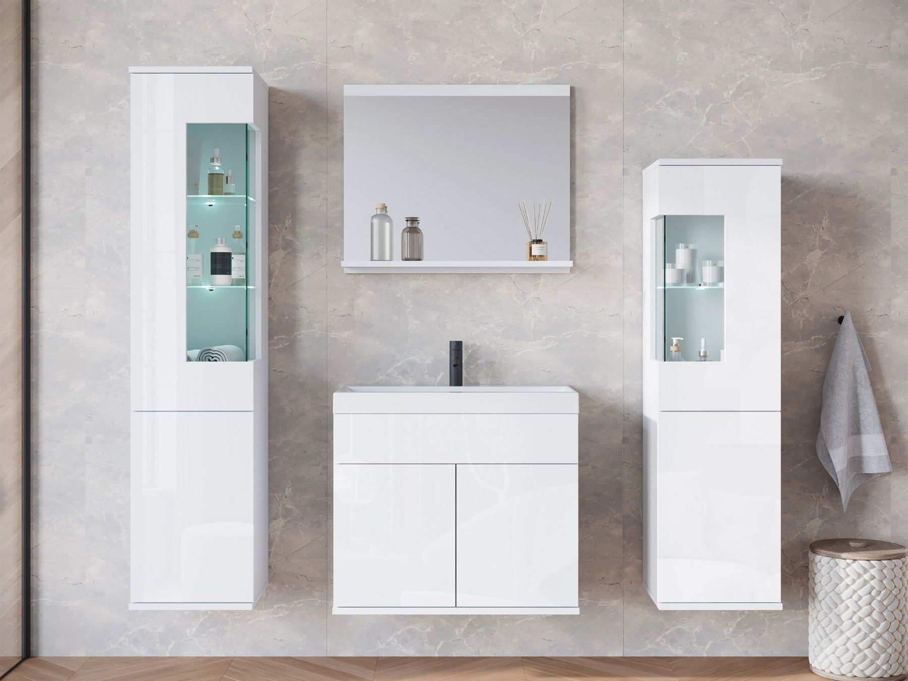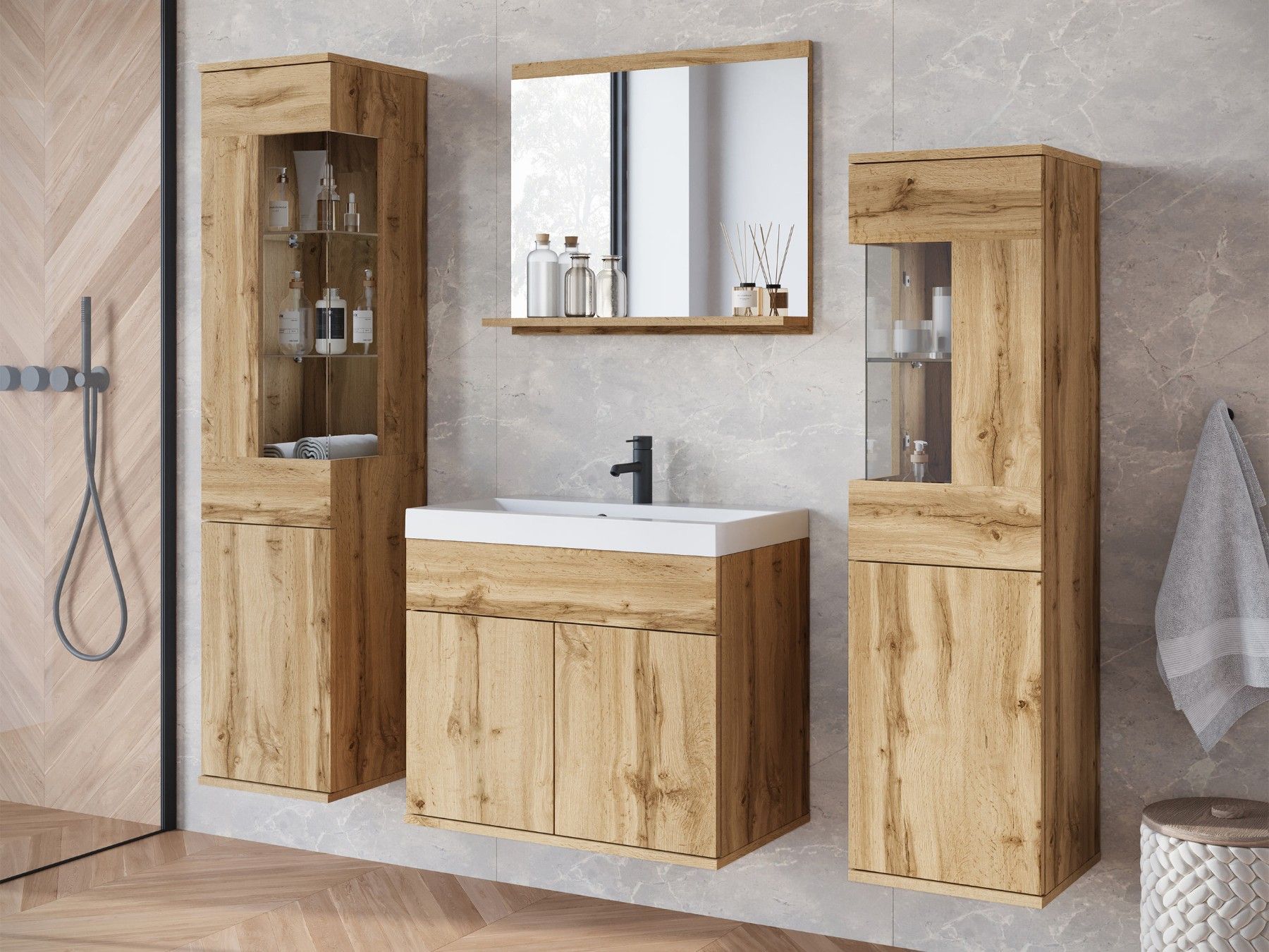 Badmöbel-Set Nairobi Badezimmer Komplett Modern Stil Badmoebel mit Waschbecken
