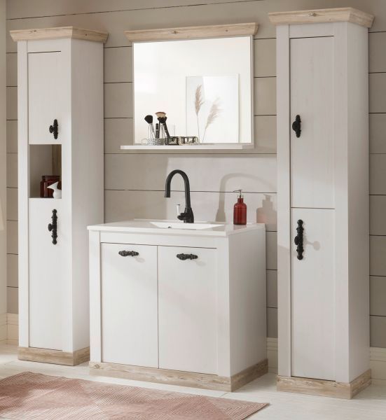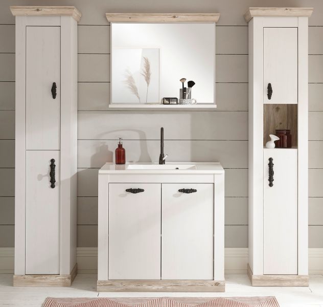 Badmöbel Set Waschtisch MIT Waschbecken Badezimmer Möbel 5-tlg weiß Pinie Rovola