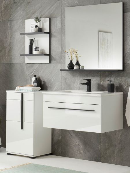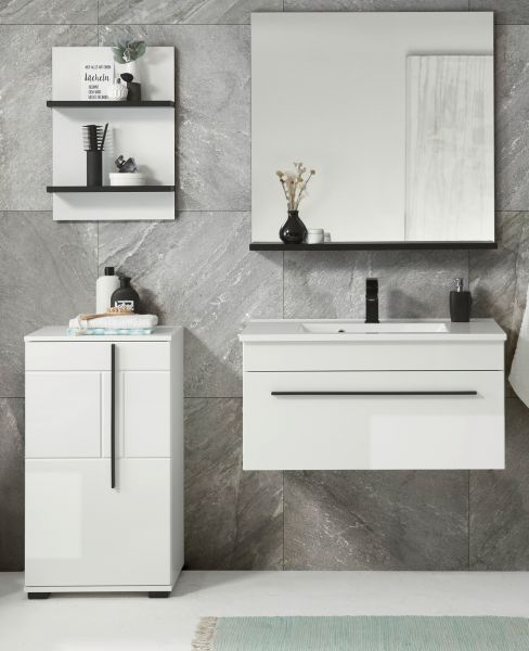 Badmöbel Set Waschtisch MIT Waschbecken weiß Hochglanz Badezimmer Möbel Design-D