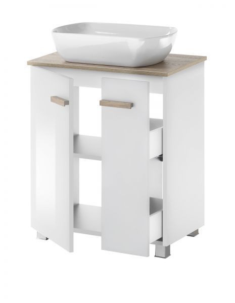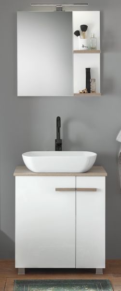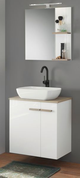 Badmöbel Set weiß Lack Hochglanz Badkombination MIT Waschbecken hängend / stehend