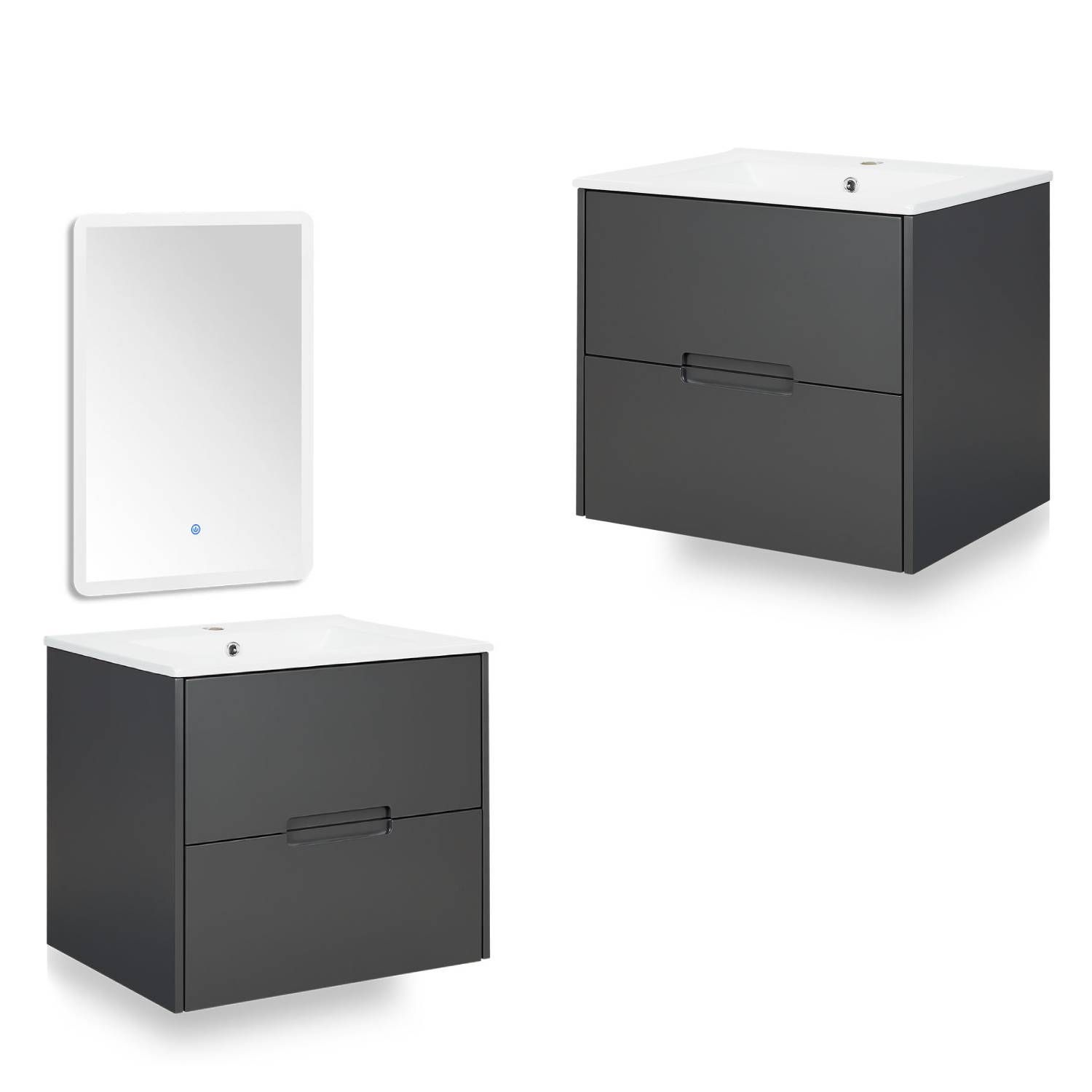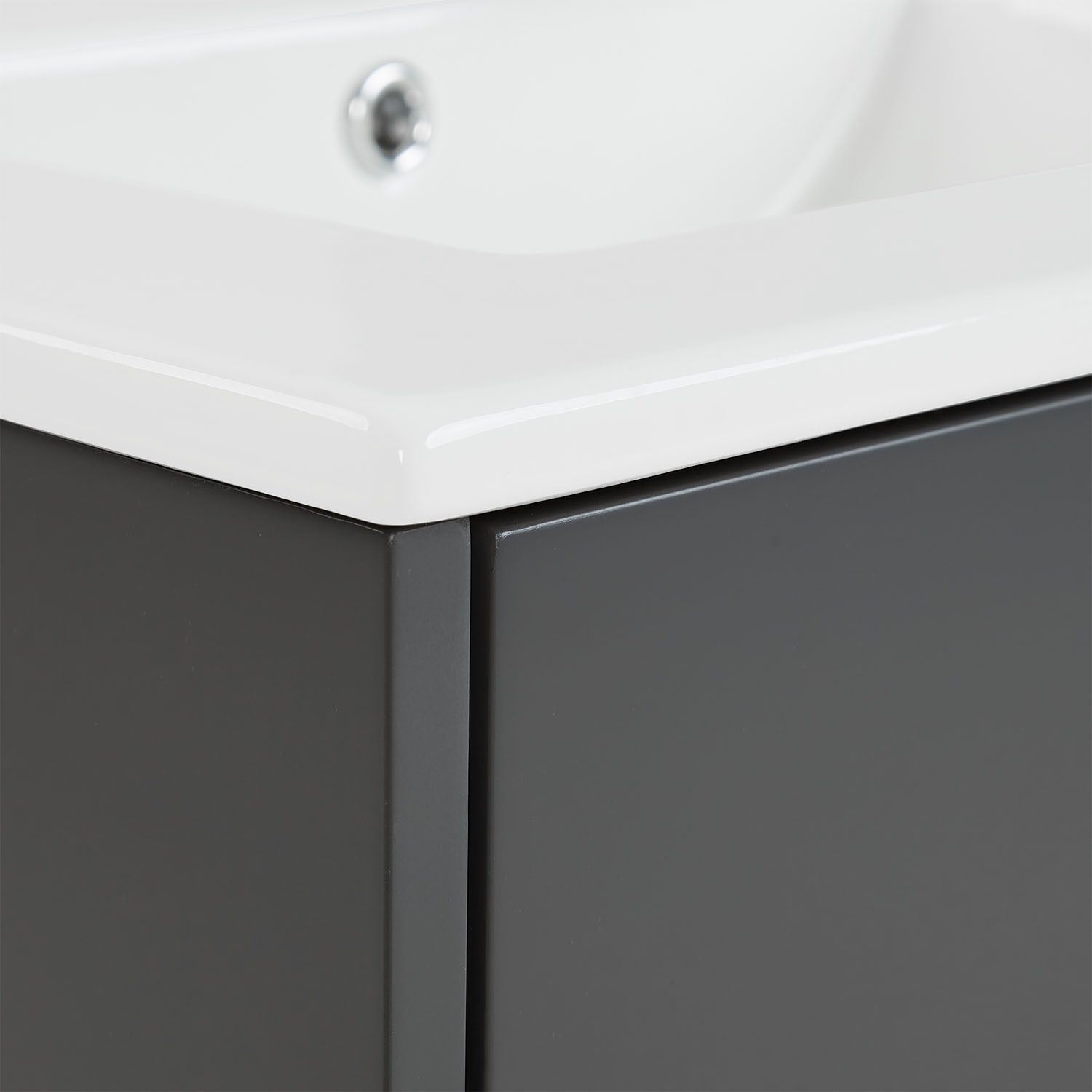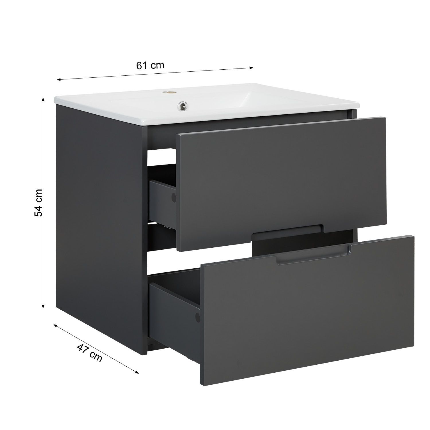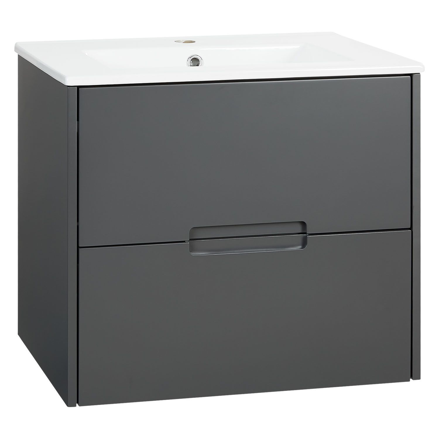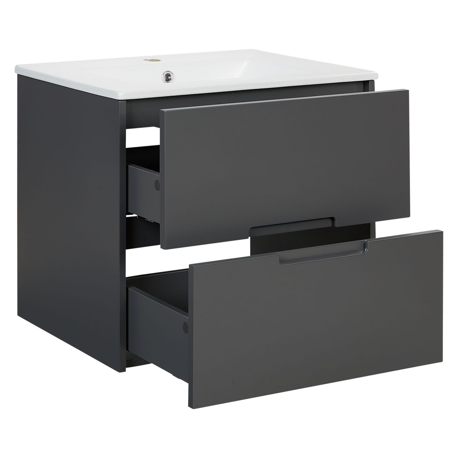 Badmöbel Waschtisch 60 cm Grau Holz Waschbecken mit Unterschrank hängend 2 Schubla