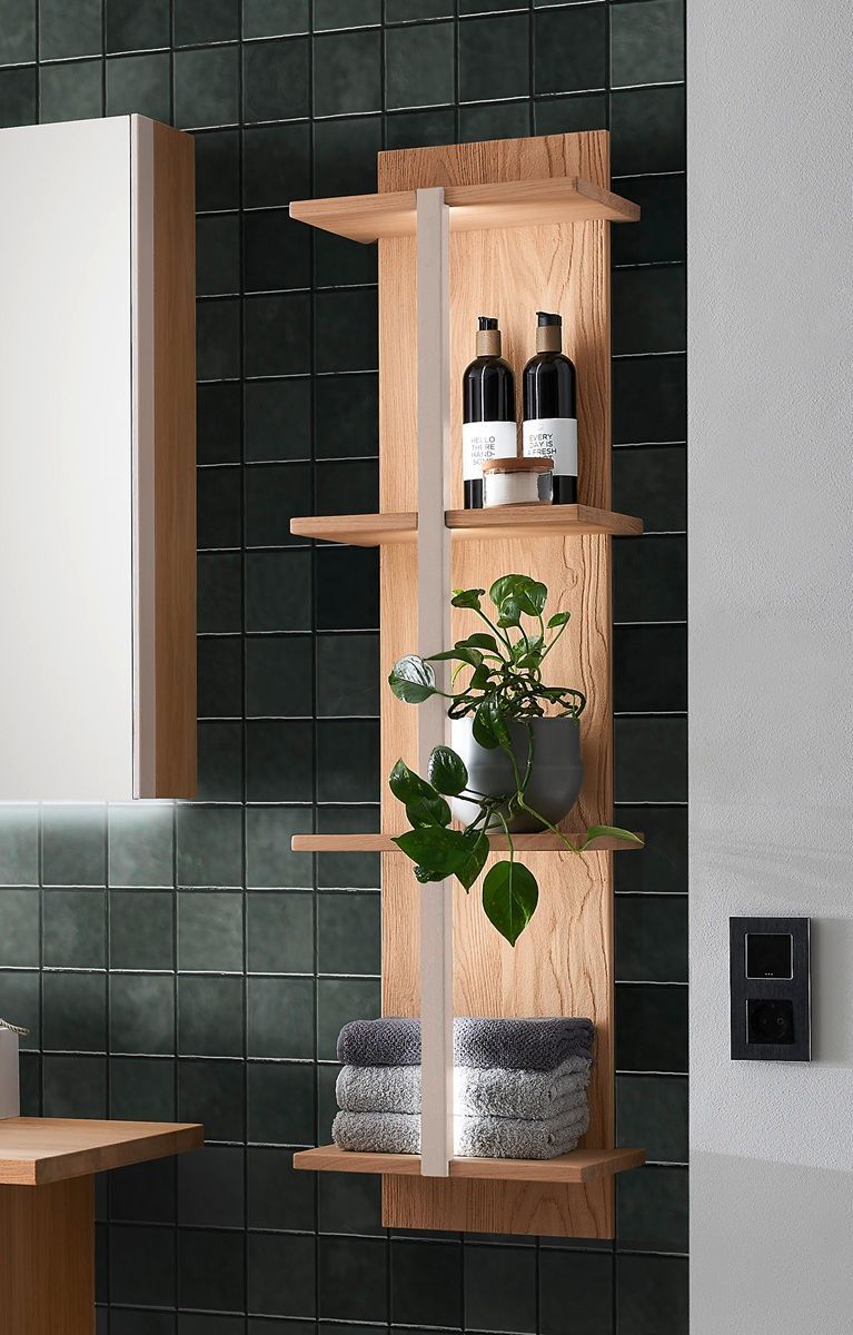 Badregal 30x135cm inkl. Beleuchtung 'Avallon' Wildeiche geölt & creme