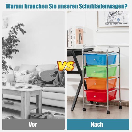 Badrollwagen Aufbewahrungswagen für Büro, Rollwagen mit 4 stapelbaren Schubladen