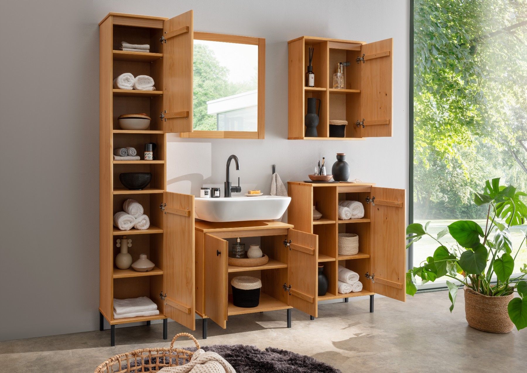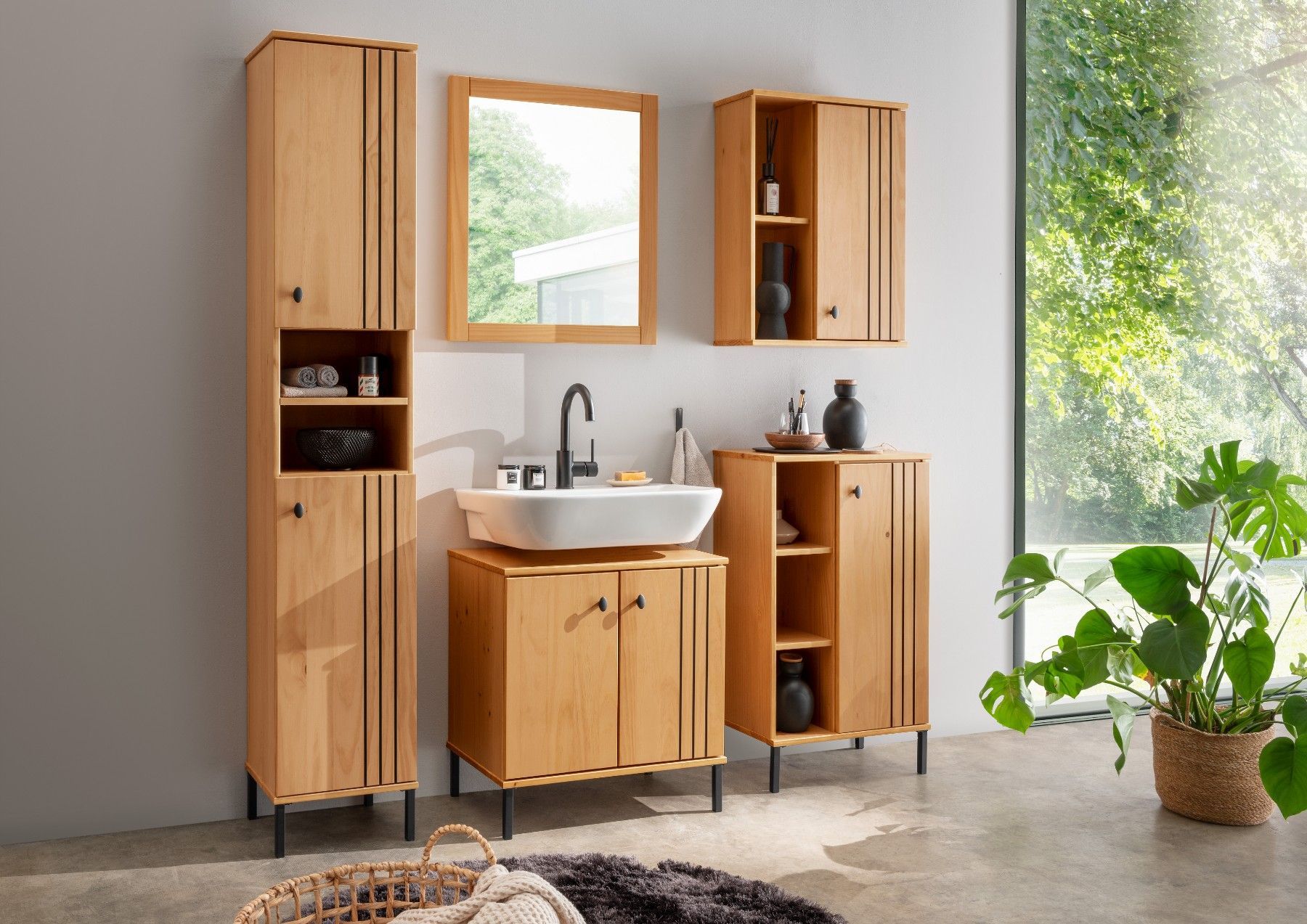 Badschrank Hängeschrank Kiefer massiv eichefarbig lackiert 52x70x21 cm Sevilla