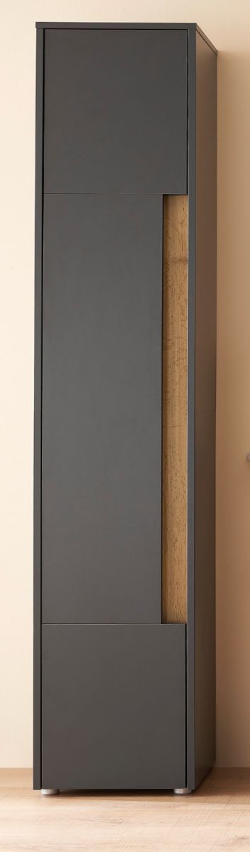 Badschrank Hochschrank grau und Eiche Badezimmer Bad Möbel Schrank 34 x 200 cm Center