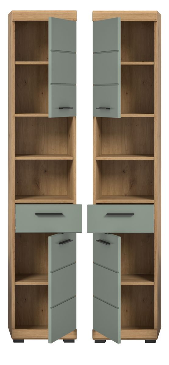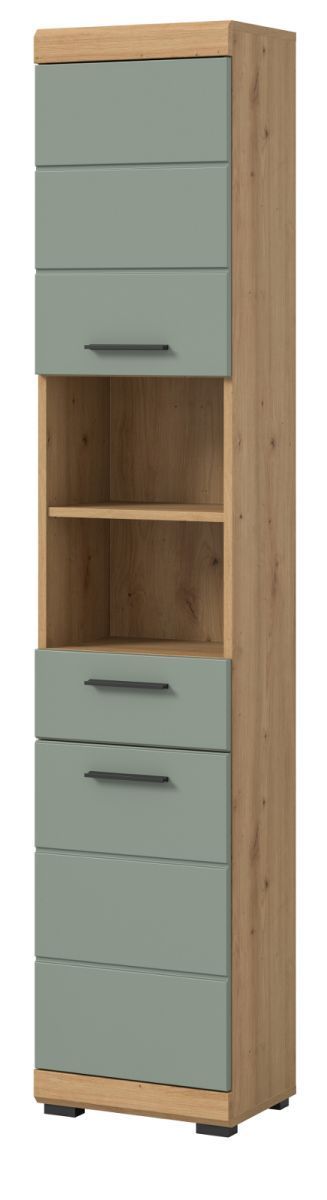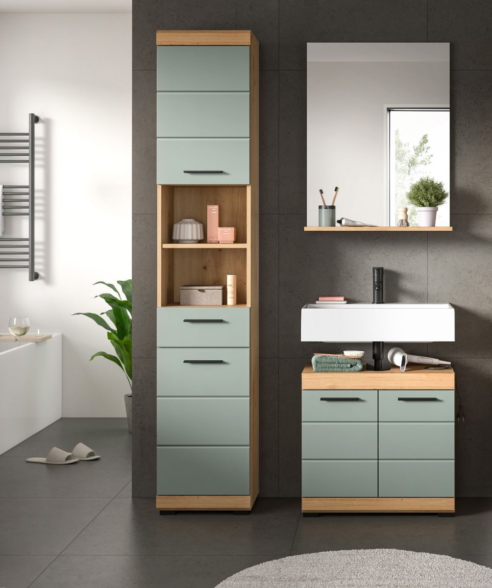 Badschrank Hochschrank Salbei grün Eiche 2-türig Badezimmer Bad Möbel 37 x 191 Shawn