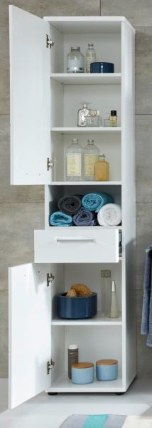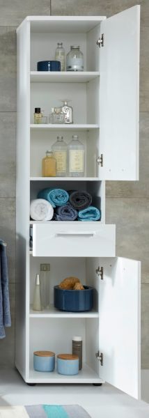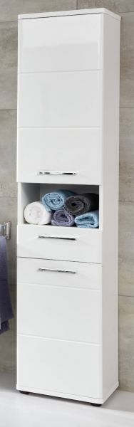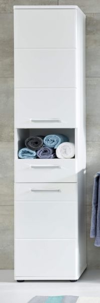 trendteam Badschrank Hochschrank weiß Hochglanz 2-türig Badezimmer Bad Möbel 37x189 Monte