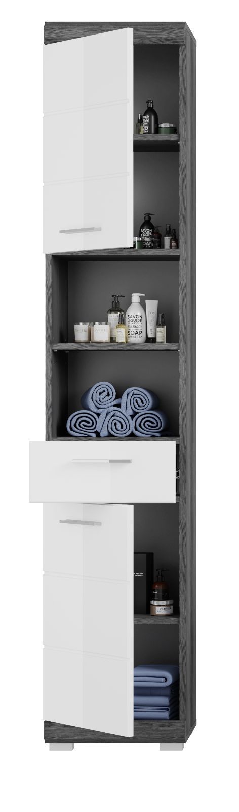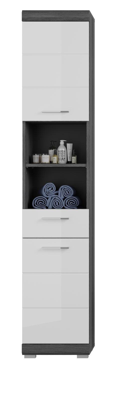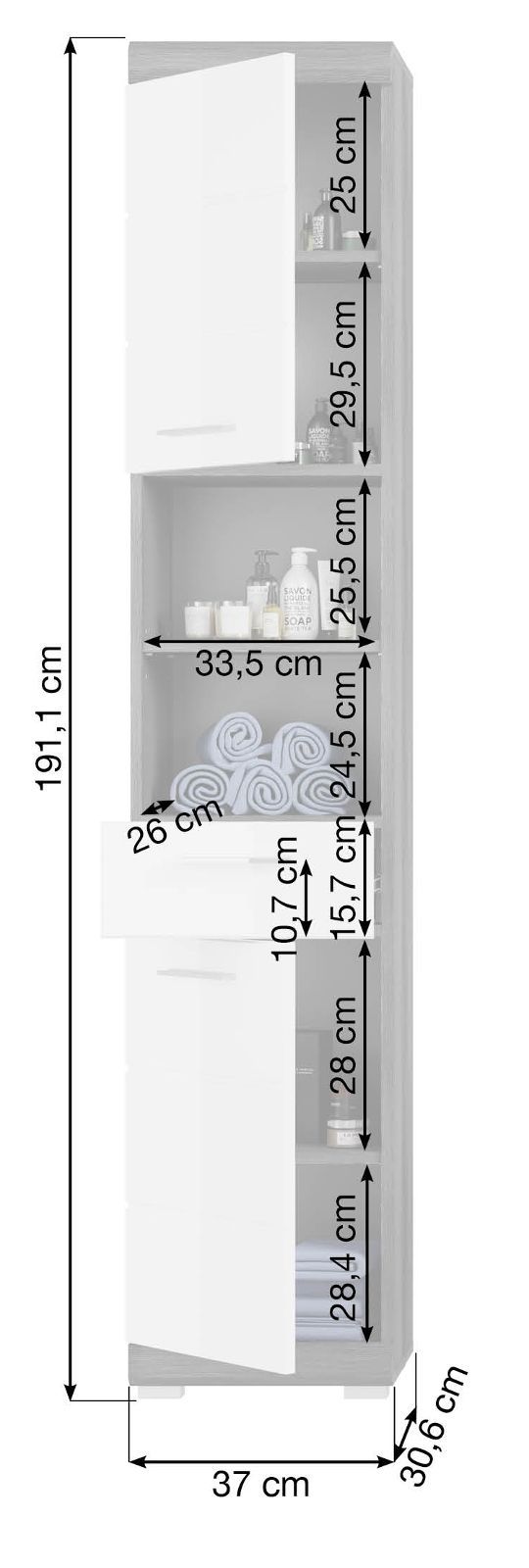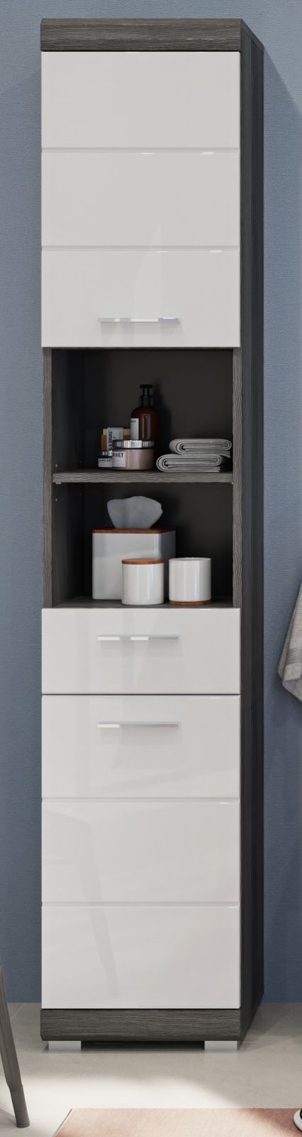 Badschrank Hochschrank weiß Hochglanz 2-türig Badezimmer Bad Möbel 37x190 Shawn