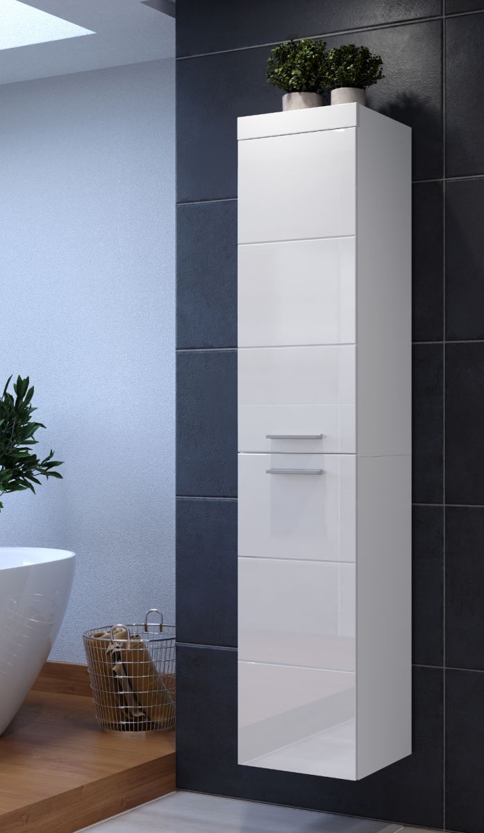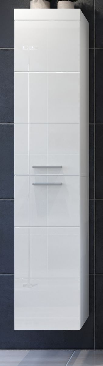 trendteam Badschrank Hochschrank weiß Hochglanz Hängeschrank hoch Badezimmer Möbel Devon